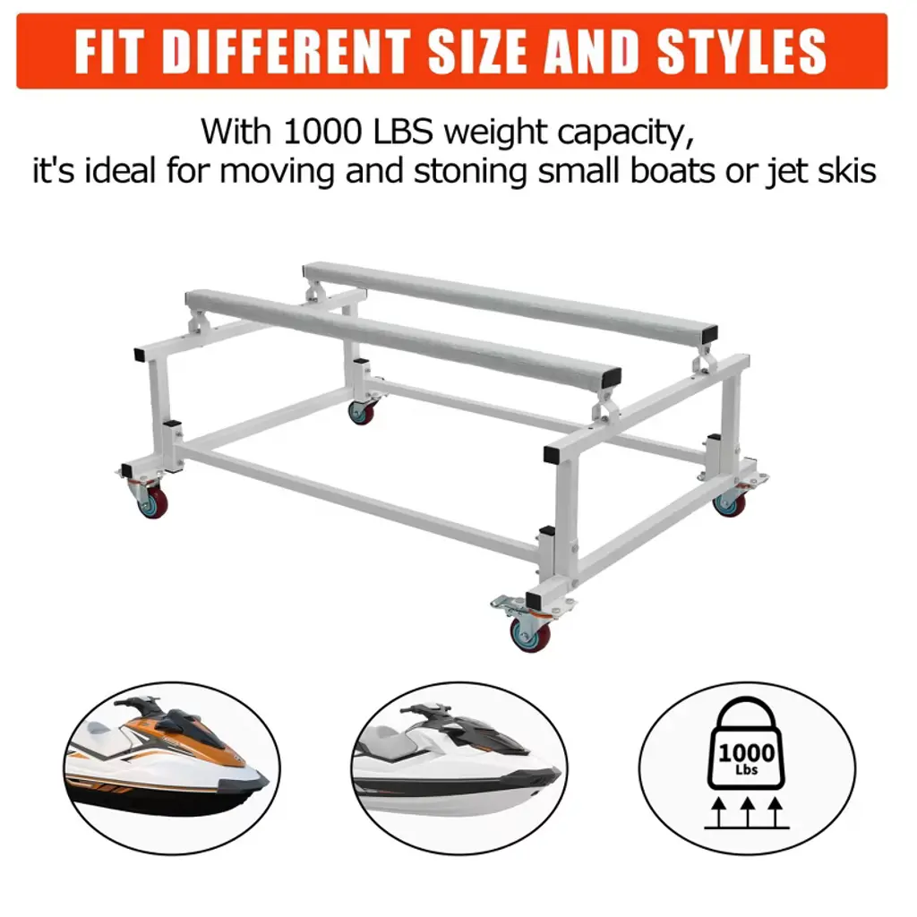 Fitment: This watercraft dolly is designed to fit a wide range of small boats, Jet Skis, wave runners, dinghies, inflatables, and more. It supports a maximum weight capacity of 1300 LBS, providing convenient transportation for various watercraft