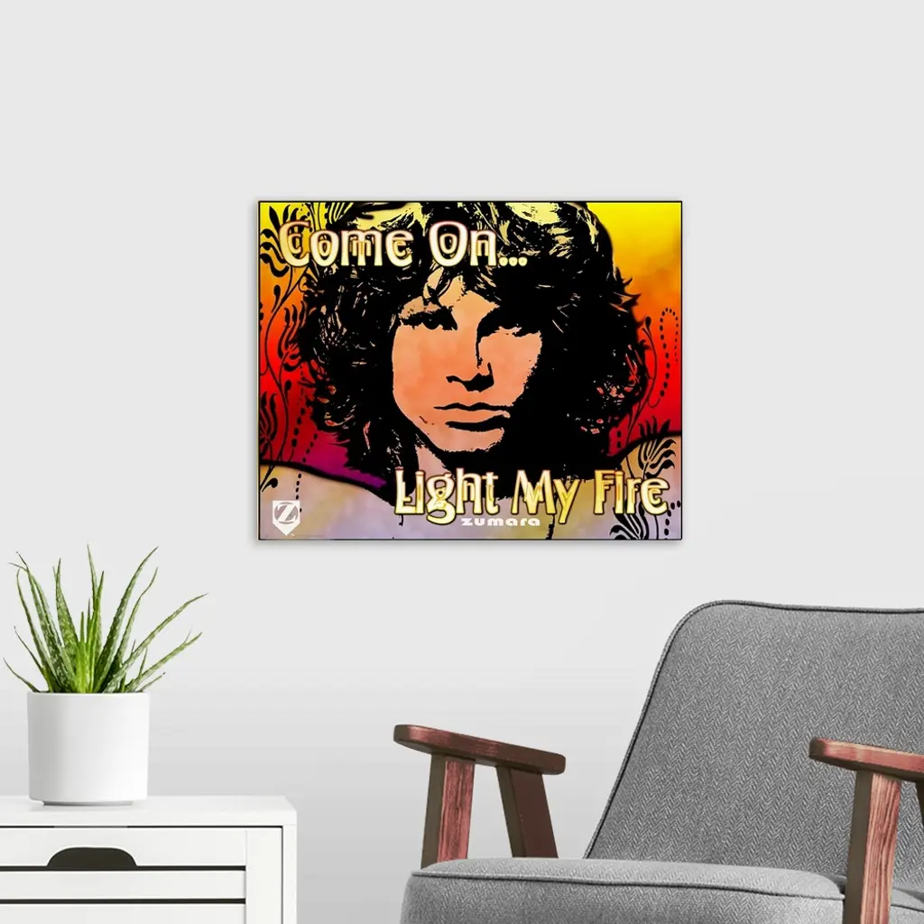 Jim Morrison Light My Fire 1 wall art for home and office decor. Discover canvas art prints, photos, mural, big canvas art and framed wall art in GreatBigCanvas.com's varied collections.