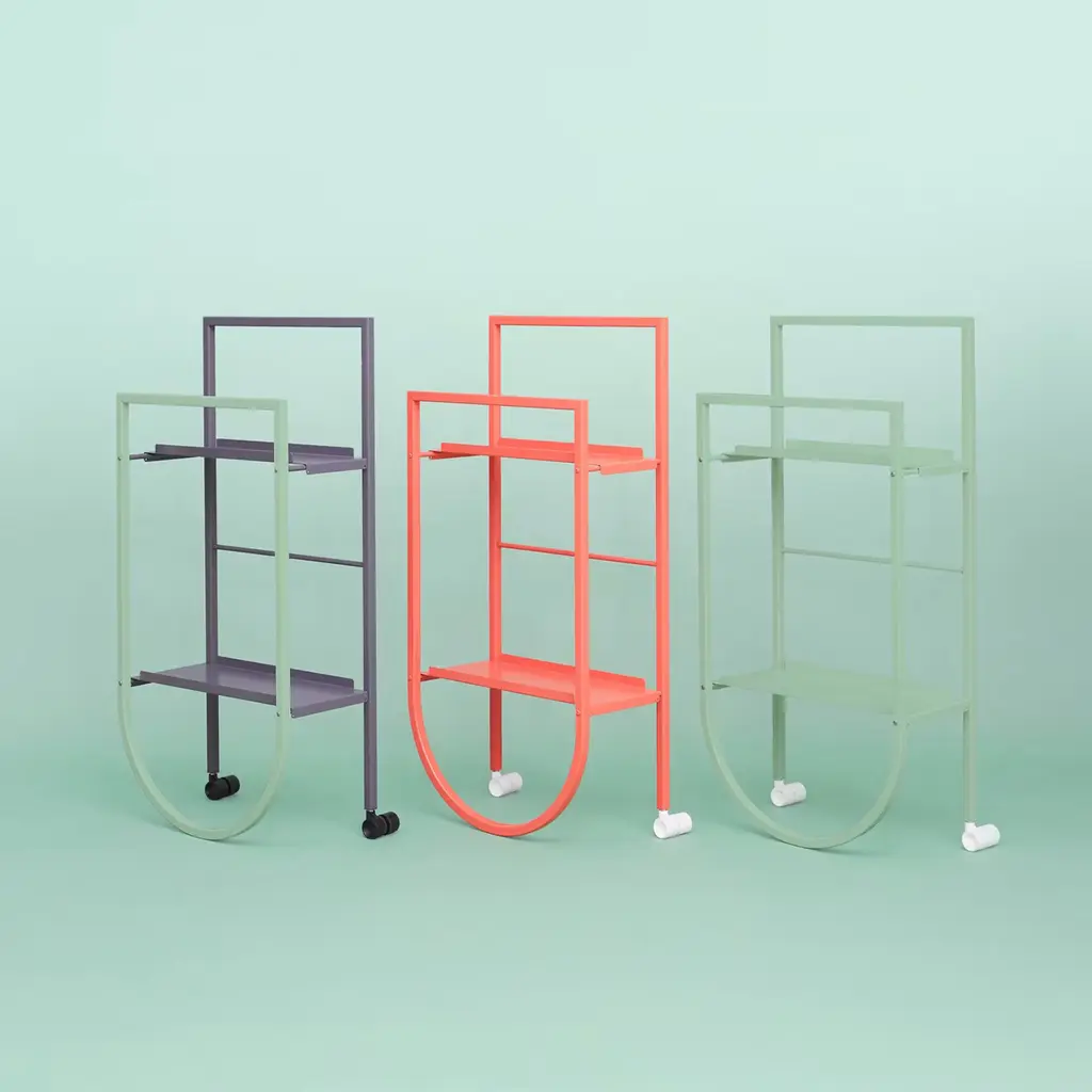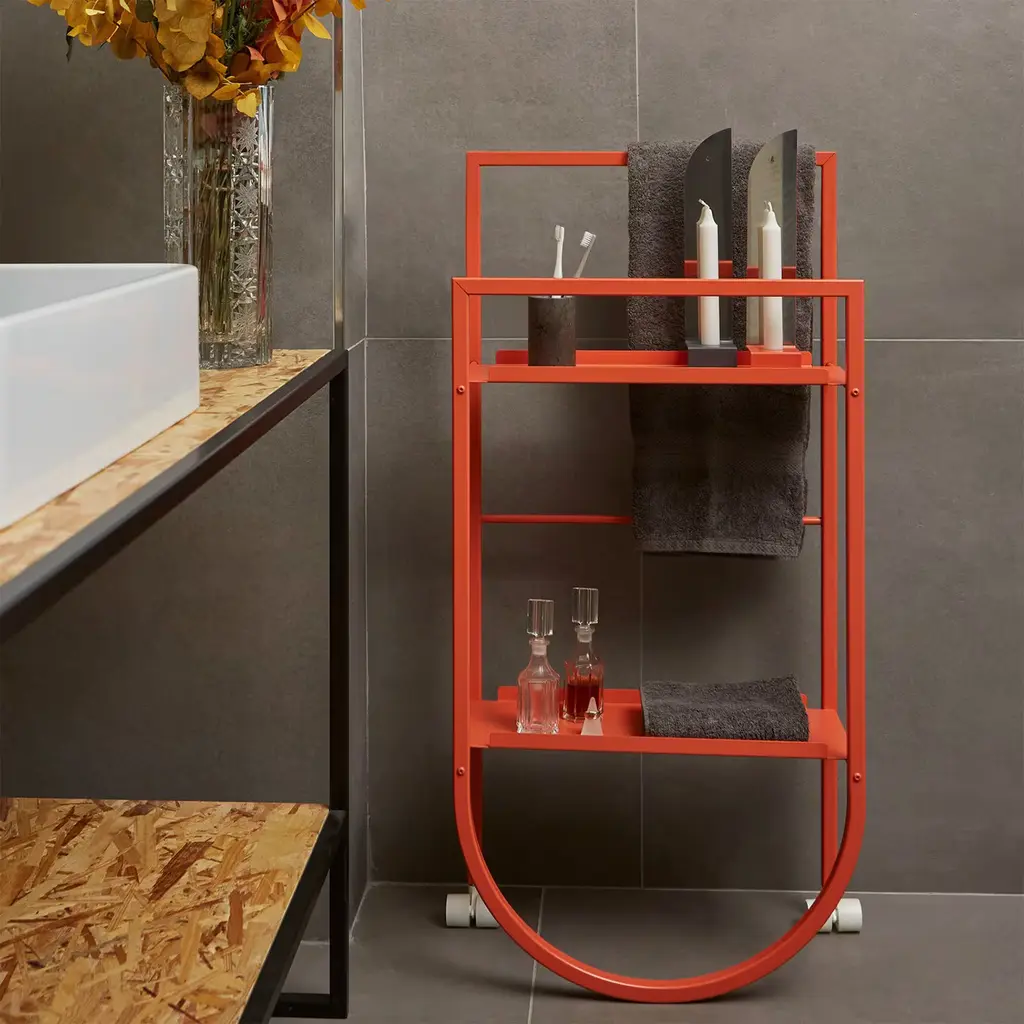 Vertical and horizontal lines cross each other neatly to give life to JJ. A functional storage trolley made of metal, which easily adapts to the most varied environments - bathroom, kitchen, living room, hallways and bedrooms - giving a touch of liveliness to the environment.