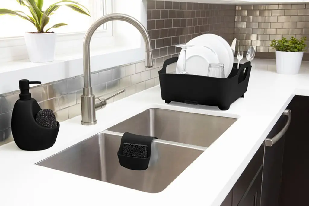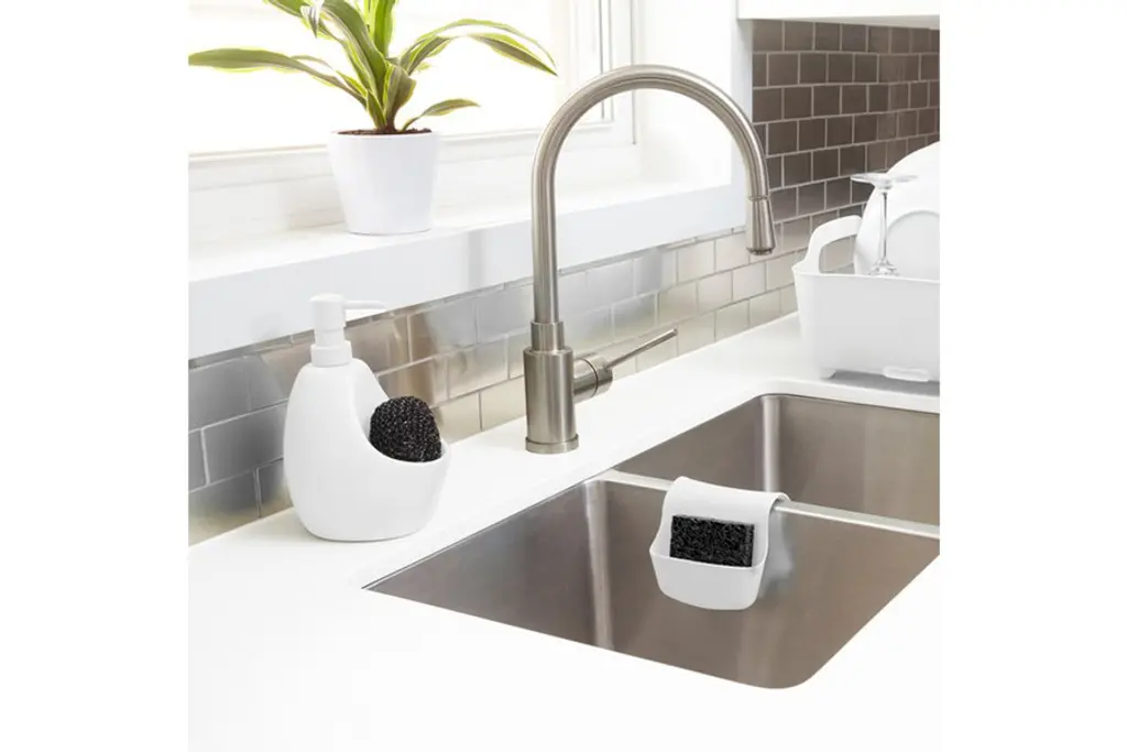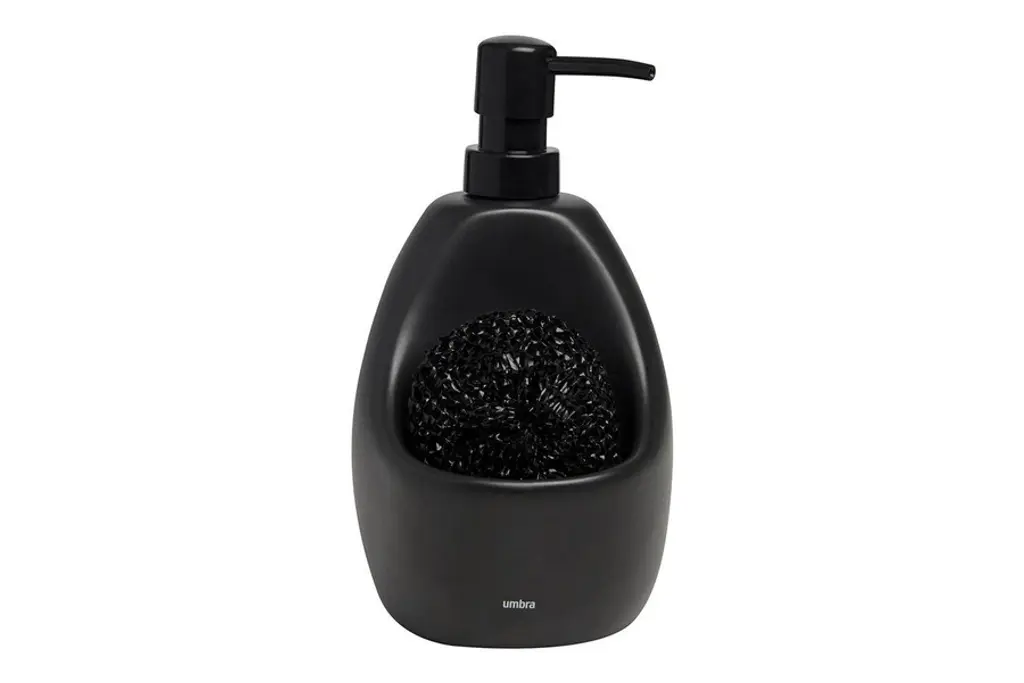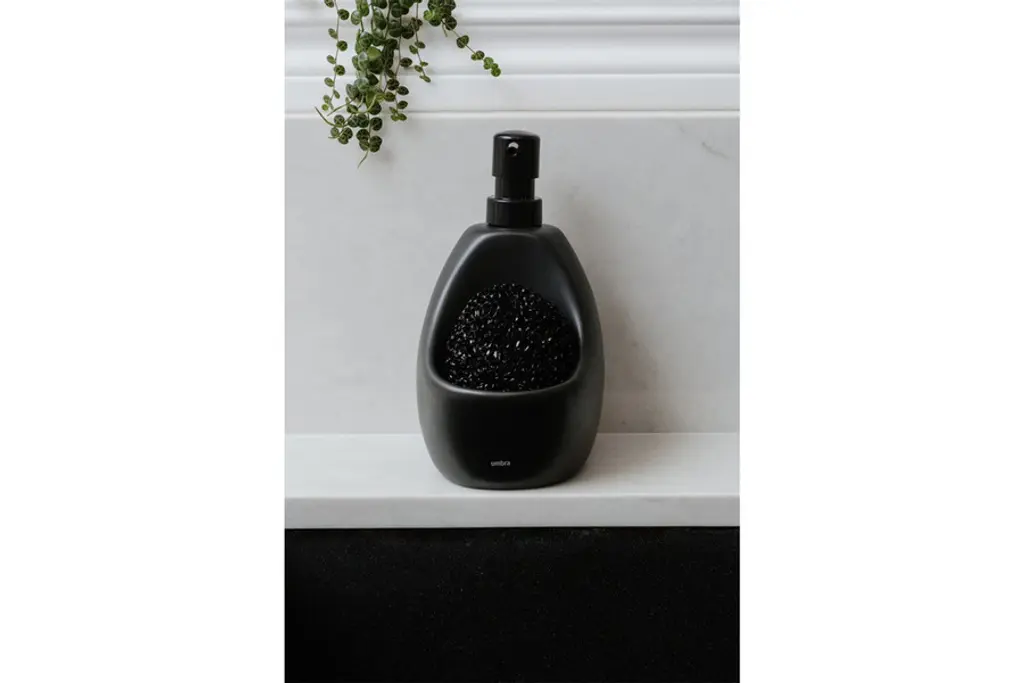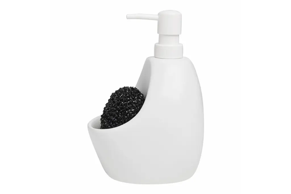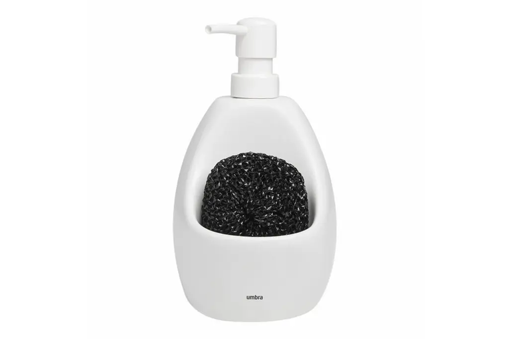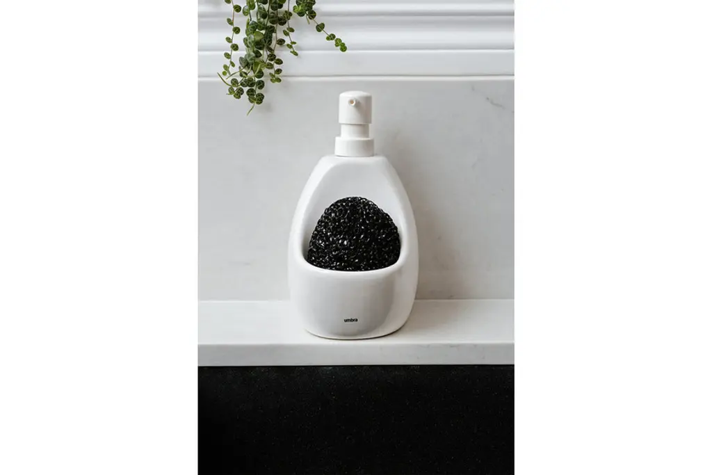 With a scrubby included, the Joey Soap Pump/ Scrubby Combo from Umbra is a must have for any modern kitchen. Available in multiple colors, this soap pump is easy to match with existing decors and the beautiful high gloss ceramic construction and polished metal accents give it a brilliant modern aesthetic. The smooth contours of the Joey Soap Pump/ Scrubby Combo provide an added convenience and a sturdy base that is built to last.