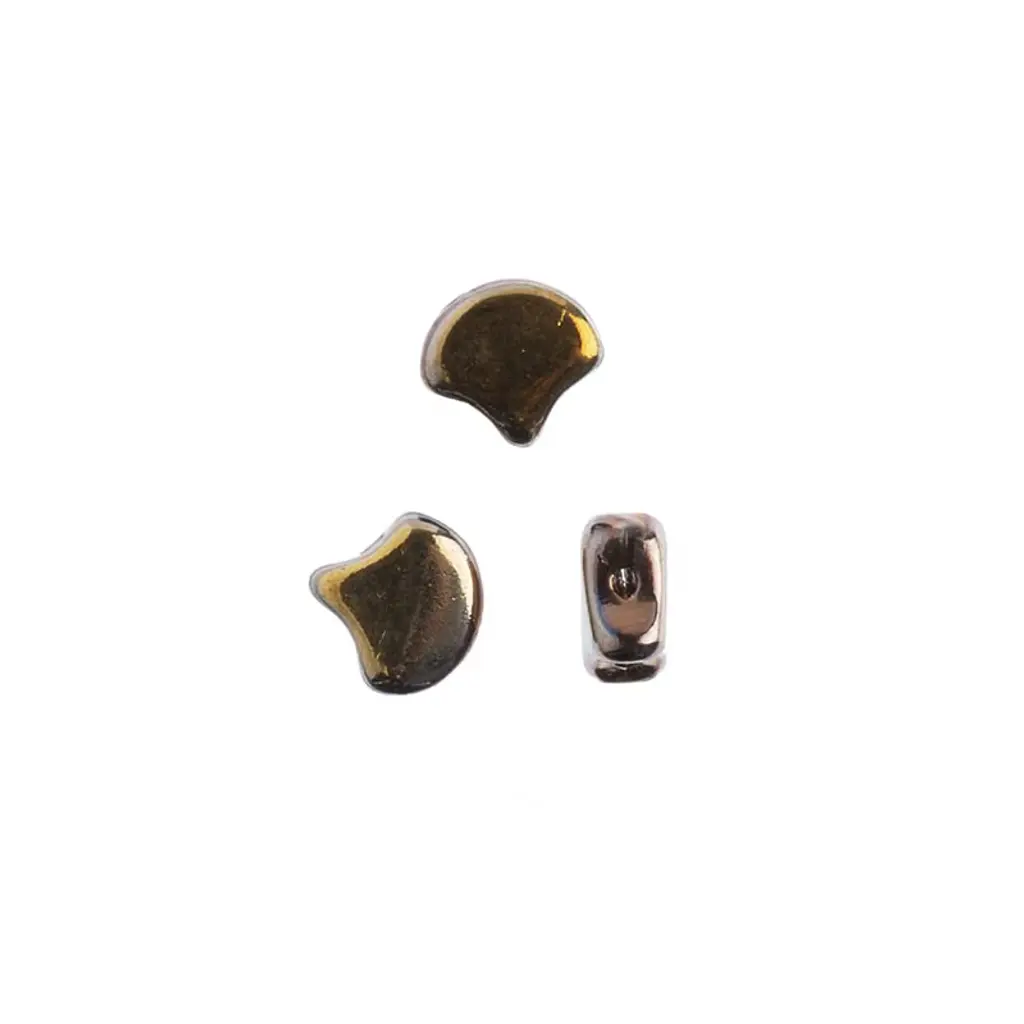 John Bead Matubo 50g Czech Glass 7.5mm Double Sided Apollo Gold Ginko Leaf Beads