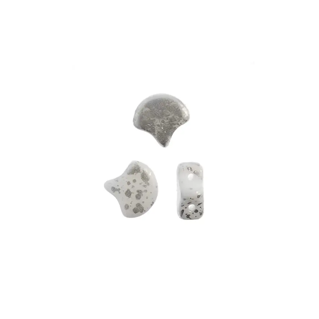 John Bead Matubo 50g Czech Glass 7.5mm White Silver Splash Ginko Leaf Beads