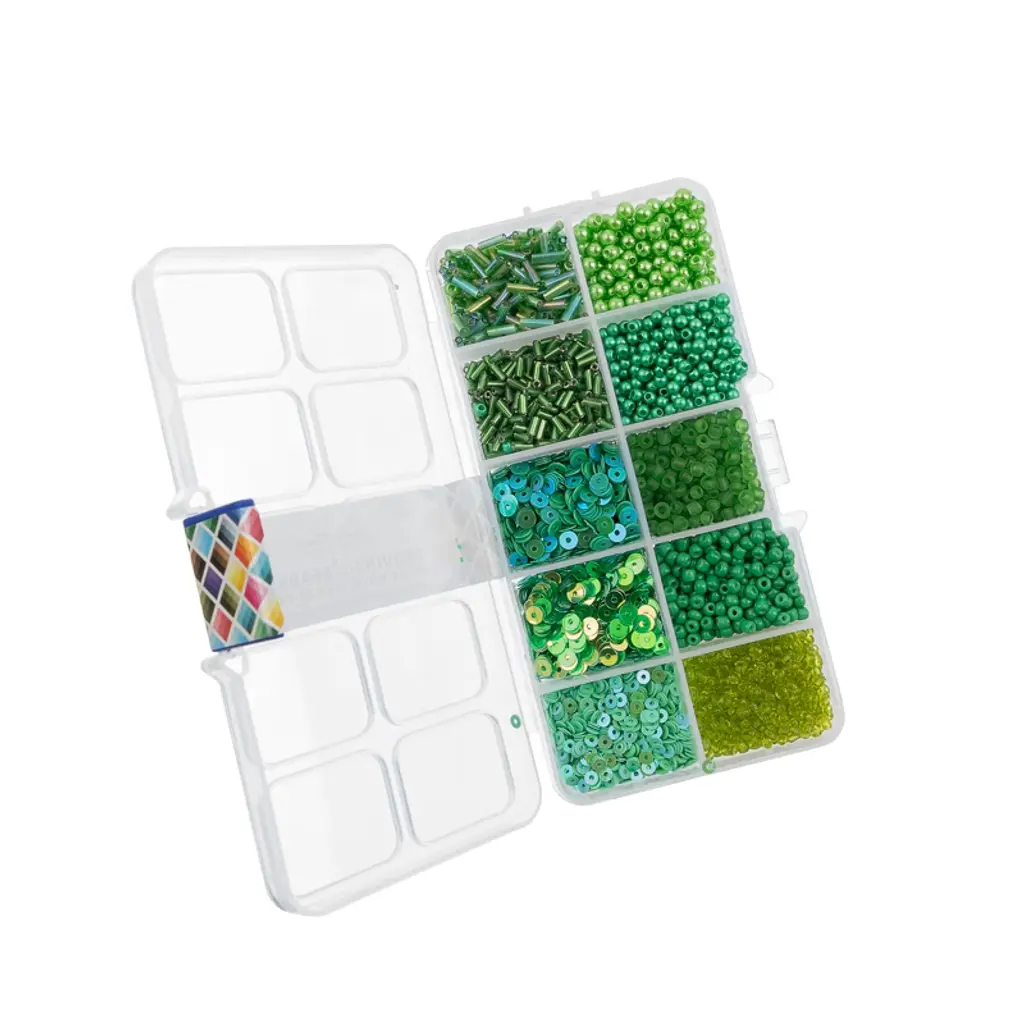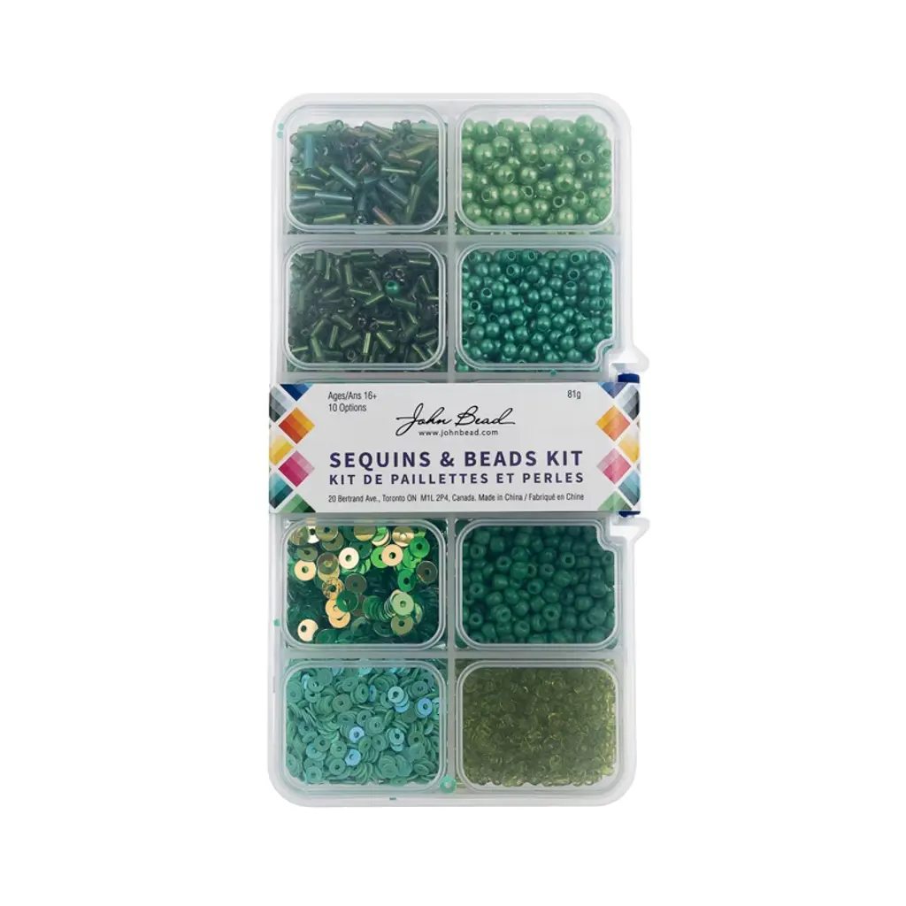 John Bead Sequins and Beads Kit includes a versatile assortment featuring 81 grams of mixed beads in 10 diverse types that differ in shapes and materials. This colorful palette beads box is a must-have beading kit and a treasure trove for all beginner and professional crafters who seek variety and inspiration for their projects. Dive into an array of bead types, including sequins, glass seed beads, and more! Providing endless possibilities to infuse texture, color, and dimension into your creations. This beads set also ensures you have ample supplies to experiment with, allowing your creativity to flow freely.Details✬ Available in multiple colors✬ 10 diverse types of beads✬ Store in a clear container with 10 divided compartments✬ Item Dimension: 5 x 2.5 x 1 inch ✬ Box Weight: 81 GramsApproximate Number of Beads✬ 4mm Pearls: 170 Pieces✬ 2.5mm Pearls: 500✬ Bugles: 930 Pieces✬ 2.5mm Sequins: 450 Pieces✬ 1.5mm Sequins: 1000 Pieces✬ 2mm Beads: 490 Pieces✬ 1.5mm Beads: 1000 PiecesPLEASE NOTE: As we do try our very best to showcase the products as closely as possible, there may be (at times), some slight variations between the manufacturer's colour batches and sizes as well as your computer screen.
