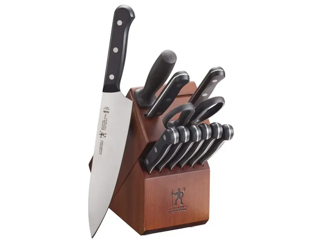 John Boos Oak Classic Country Table 48x30 And Henckels Knife Set, Slate Gray, Two Shelves, No Drawer, Casters