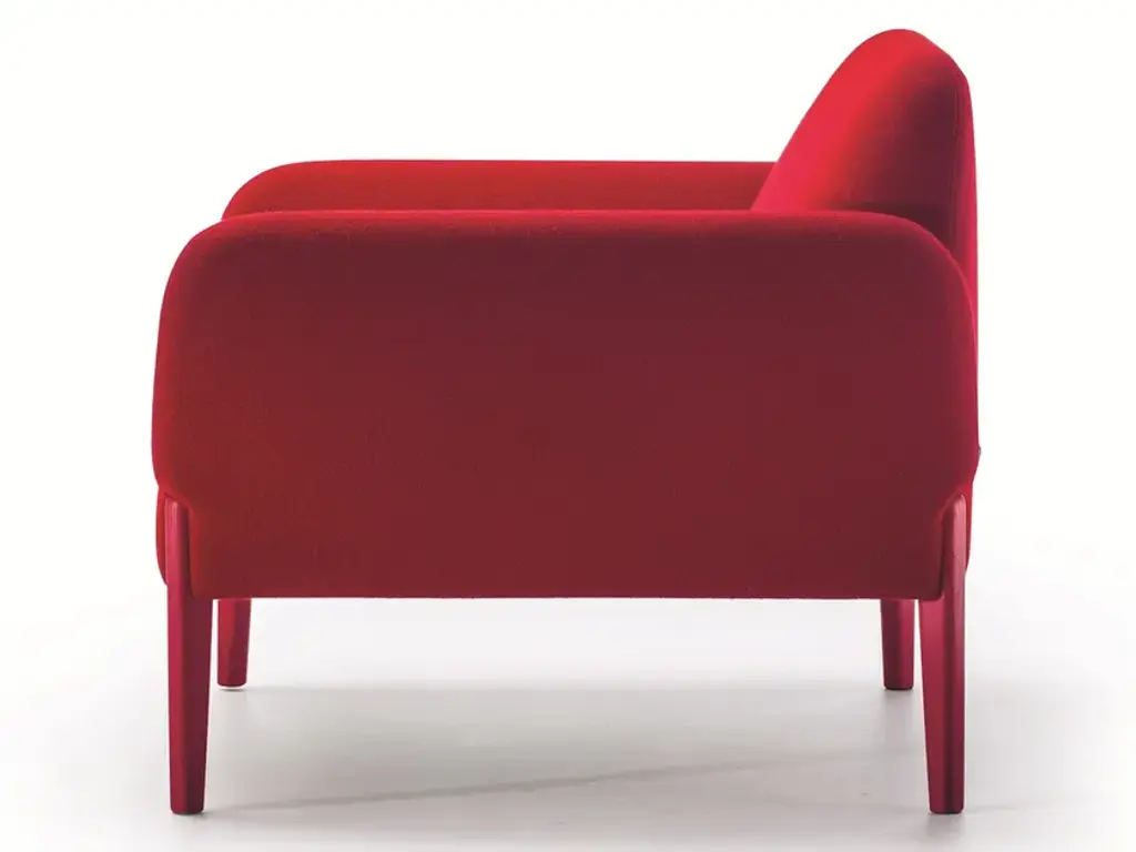 Dimensions: H: 29 1 ⁄ 2” L: 32 1 ⁄ 4” D: 32 1 ⁄ 4” H: seat 16 1 ⁄ 2” H: armrest 23 5 ⁄ 8”.A complete and versatile family of upholstery, from sofas to armchairs, and benches to poufs, featuring distinctive, elegantly soft shapes, with slender armrests into which the wooden feet are set like jewels, in a natural ash, wengé or graphite finish, or in die-cast aluminium.The wooden frame is padded with non-deformable variable-density polyurethane foam, and finished in polyester fibre. There is a selection of different coverings in fabric or high-quality leather.