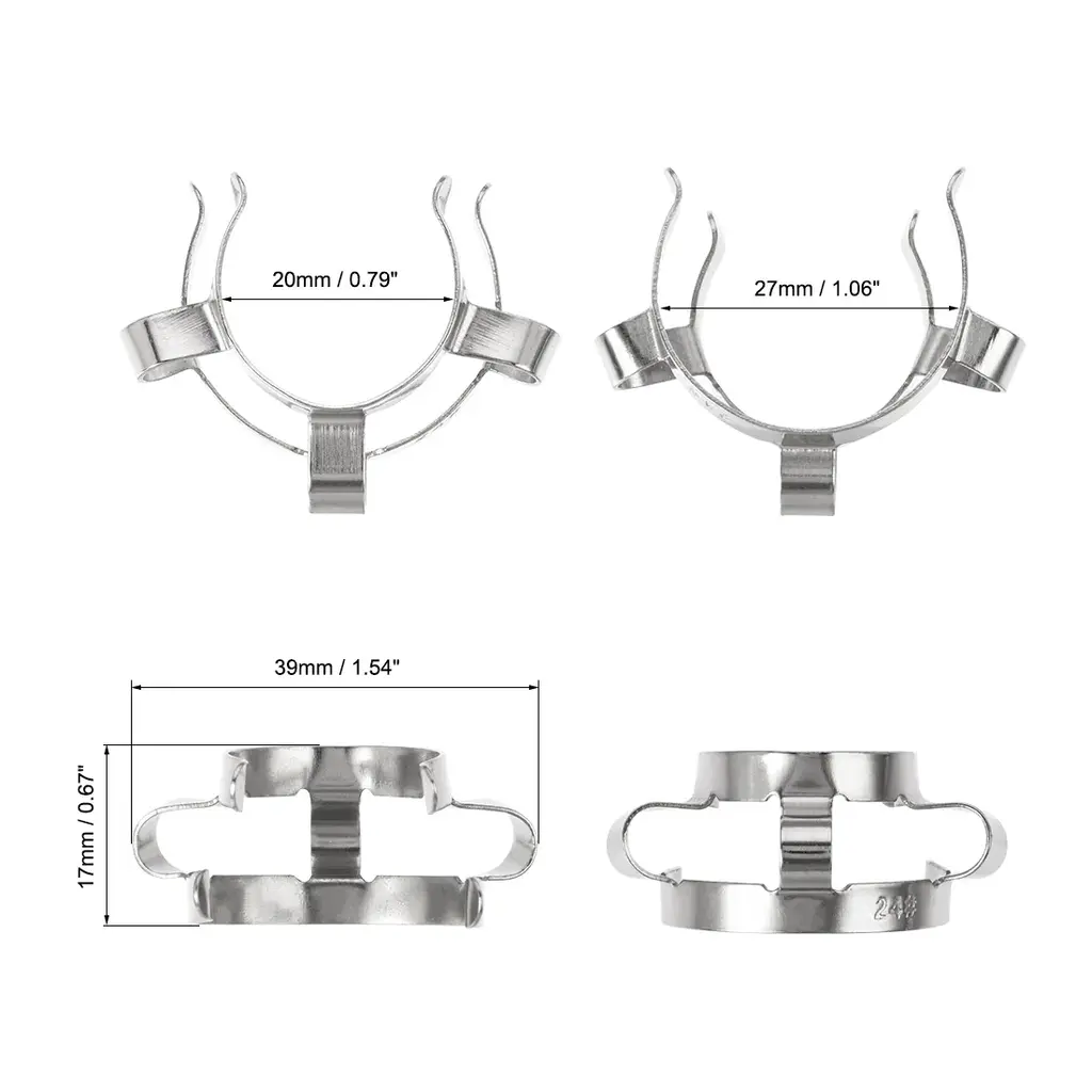 Description: 1.Made from Steel, which makes it have a higher hardness than plastic ones.2.To prevent a joint from separating during a reaction process, the clips can be used to secure the two sides together.3.Widely used on expert or beginner scientific labs.Specifications:Top Opening Width: 17mm / 0.67 InchTop Inner Diameter: 20mm / 0.79 InchBottom Opening Width: 24mm / 0.95 InchBottom Inner Diameter: 27mm / 1.06 InchOverall Size: 39x17mm / 1.54*0.67 Inch (D*H)Weight: 13gPackage Content:3 x Joint Clip