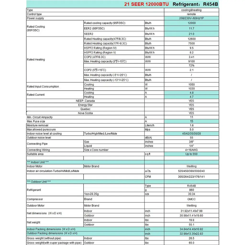 Jojoka 12000 Btu Mini Split Air Conditioner Heat Pump Inverter 21 Seer Ductless Ac 220v