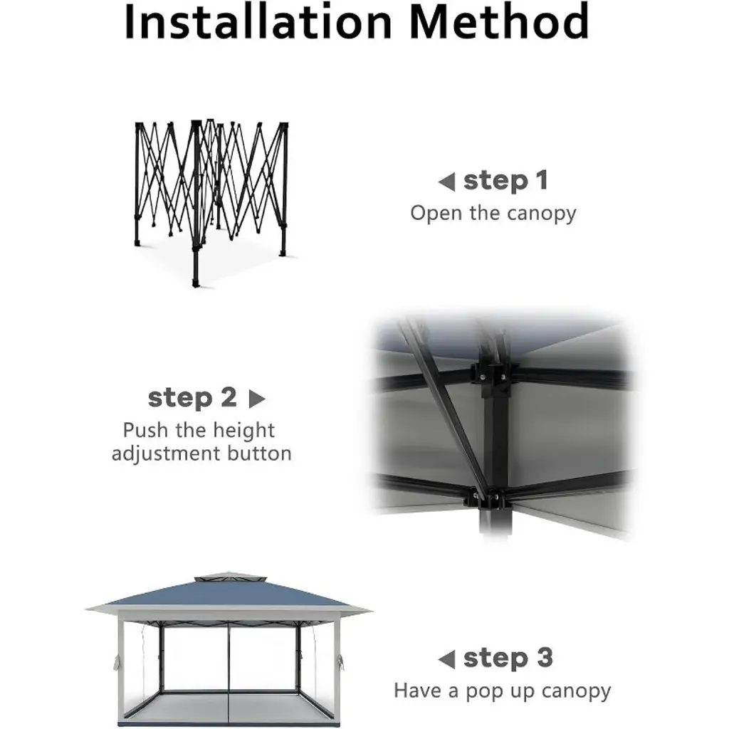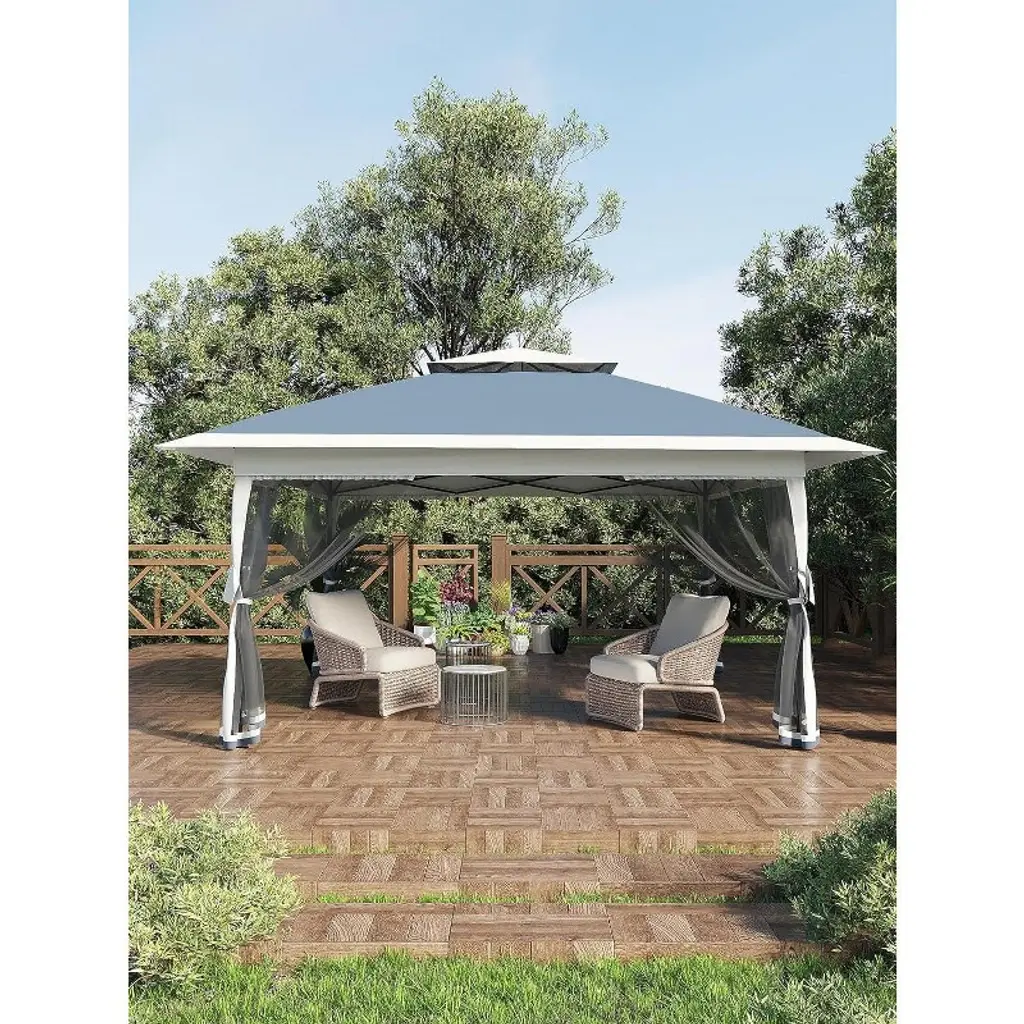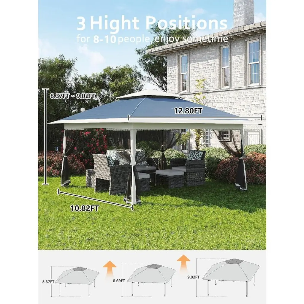 Jojoka 13x13FT Pop-Up Gazebo, Instant Canopy Gazebo with Mosquito Net & Double Roof, Adjustable Height Canopy Tent,with Waterproof and Ultraviolet Double Roof for Backyard