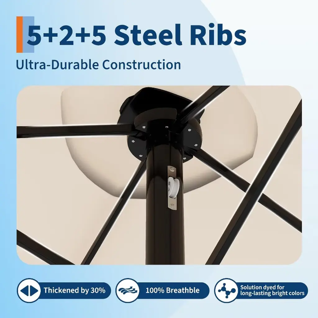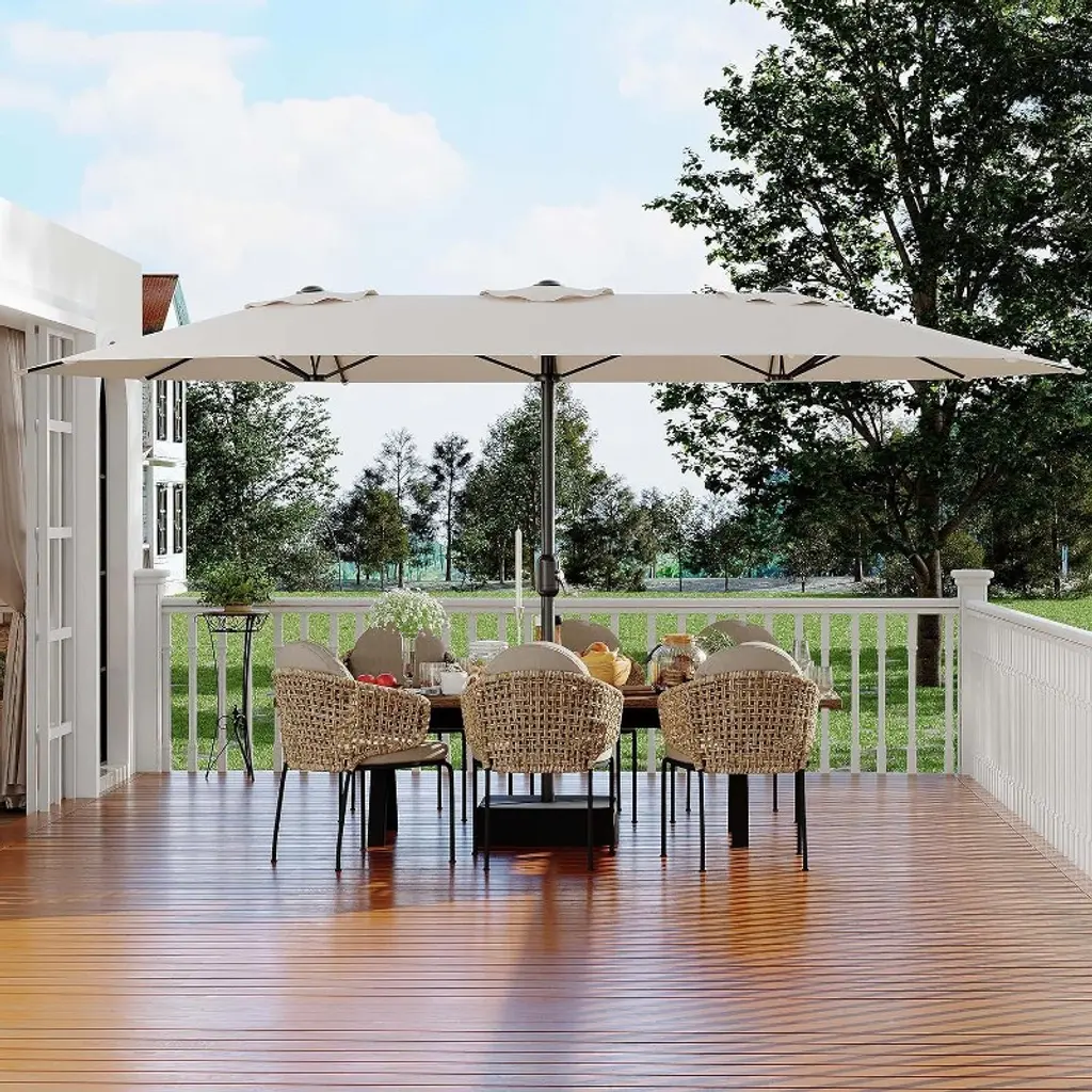 Jojoka 15ft Large Patio Umbrella With Base,double-sided Outdoor Market Rectangle Umbrellas For 2-8 People,beige