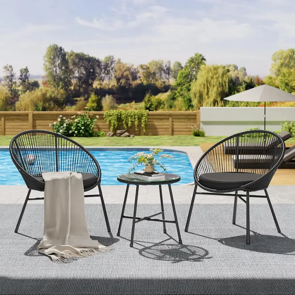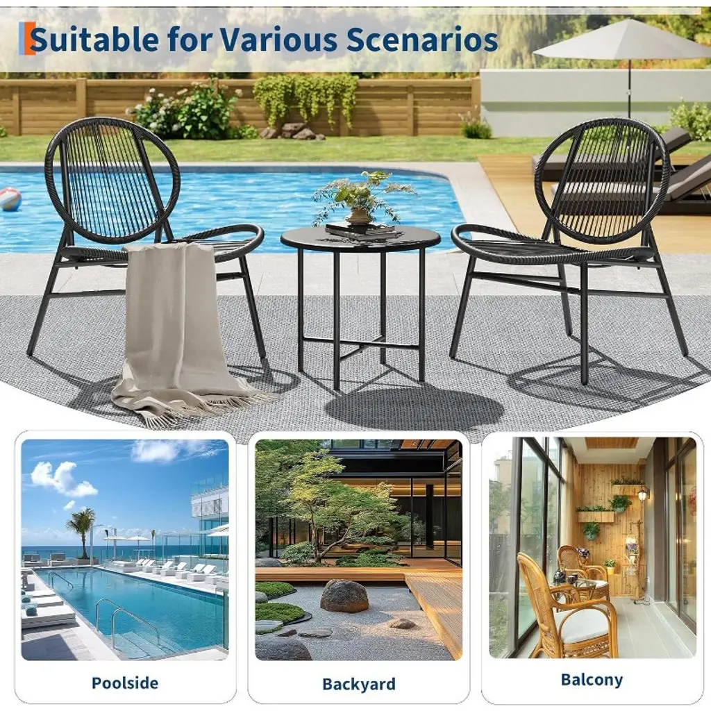 Jojoka 3 Piece Patio Bistro Set,outdoor Seating Chairs,modern Patio Chairs Set Of 2 With Side Table For Garden,black
