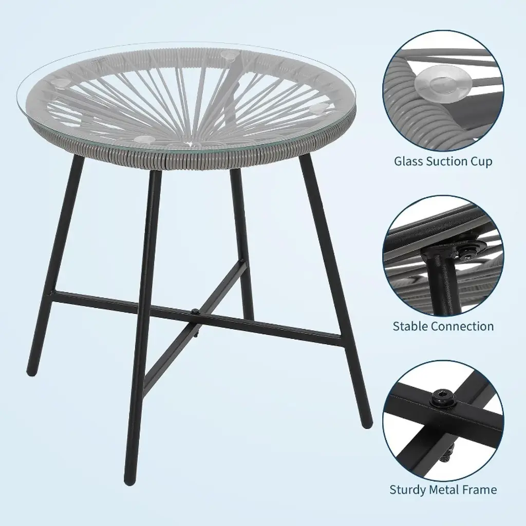 Jojoka 3-piece Patio Conversation Bistro Set,modern Wicker Wove Furniture Sets With Glass Top Table And 2 Chairs,gray