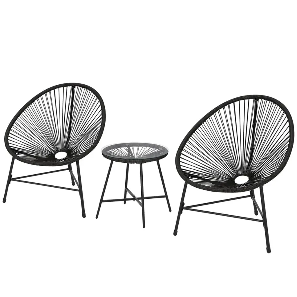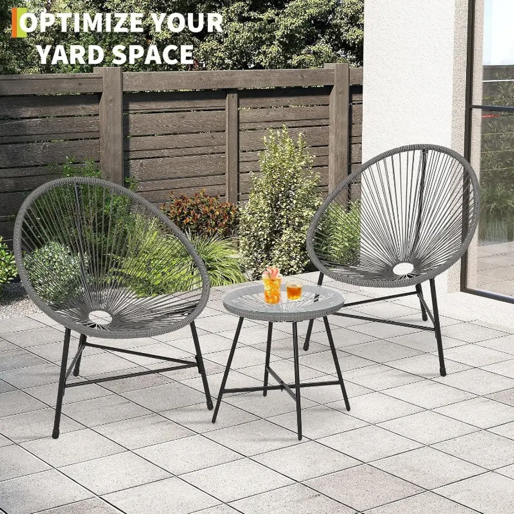 Jojoka 3-Piece Acapulco Patio Conversation Bistro Set, All-Weather Modern Wicker Wove Furniture Sets with Glass Top Table and 2 Chairs, Outdoor Seating for Balcony, Backyard