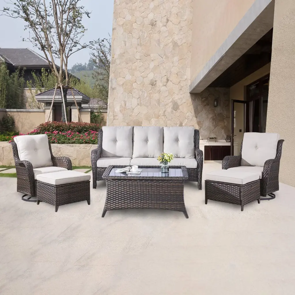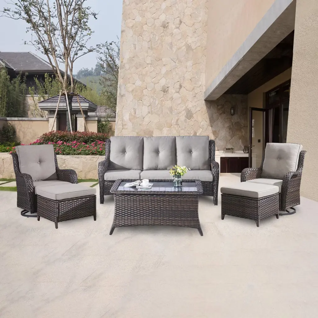 Jojoka 5-piece Patio Sofa Set With High Back Lounge Chairs, Ottomans And Coffee Table, All-weather Rattan Furniture For Outdoor Relaxation, Gray