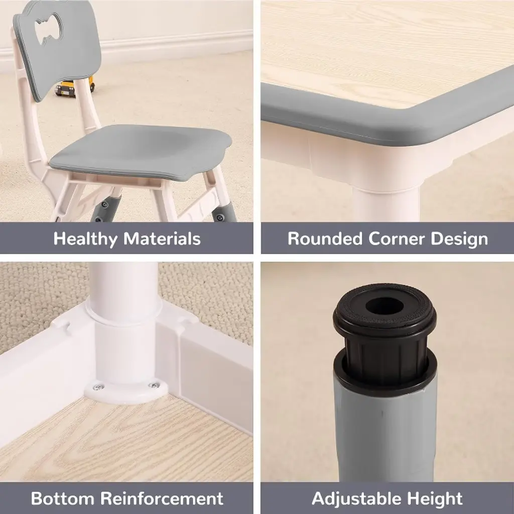 Jojoka Kids Table And 4 Chair Set,height Adjustable Toddler Table And Chairs Set With Non-slip Table Legs,grey