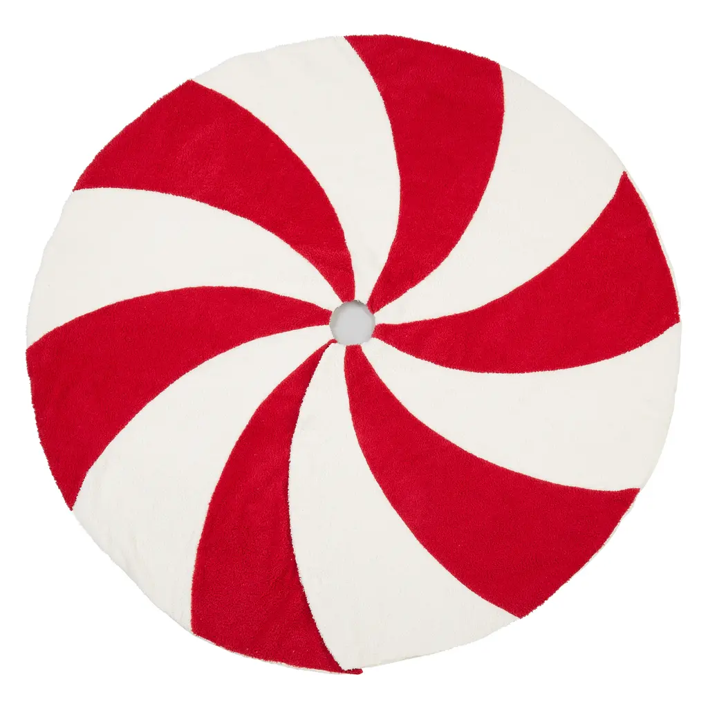 Complete your holiday decor with this Candy Cane Tree Skirt. The playful candy cane design adds a touch of festive cheer to your tree. The soft and durable material provides a cozy and comfortable surface for your gifts. Elevate your holiday decor with this charming and delightful tree skirt.Features: