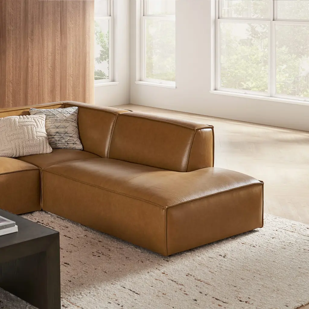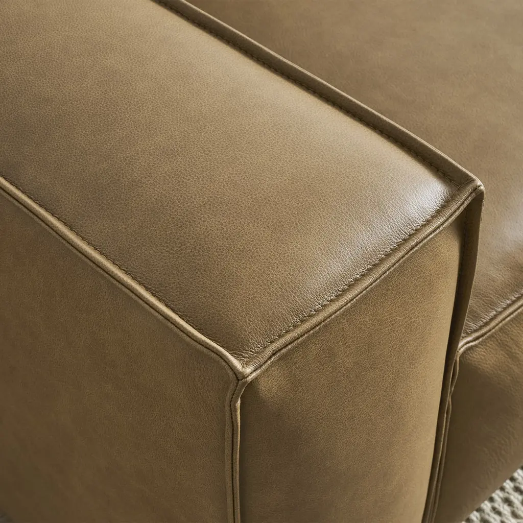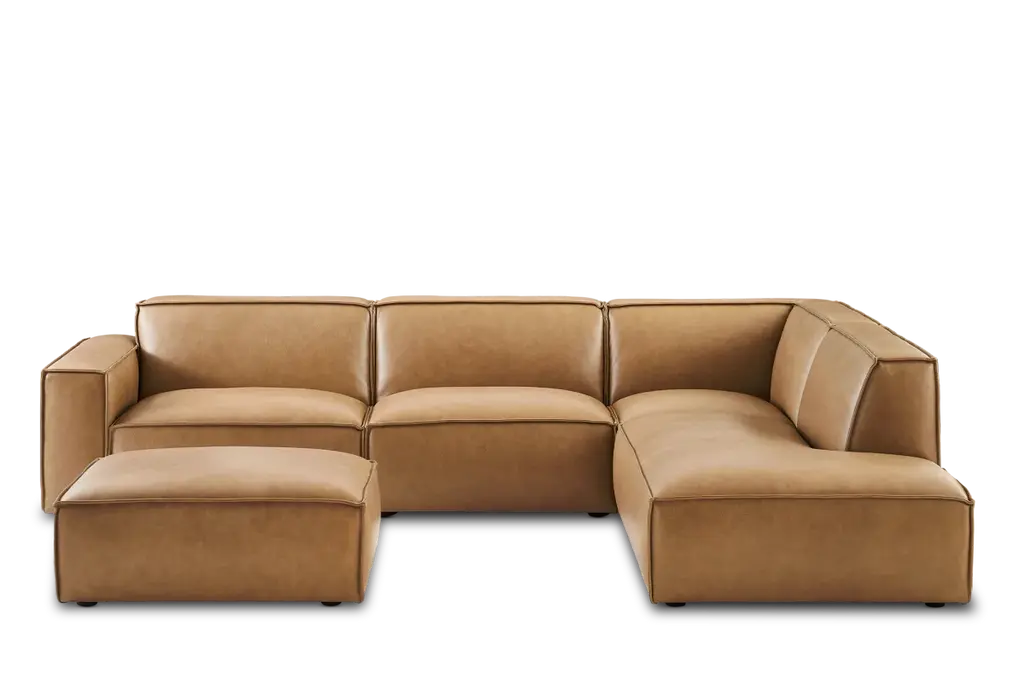 Swathed in luxurious leather, Jonathan's modern sensibility shines through while keeping to its clean silhouette and lounge-worthy modular seating.