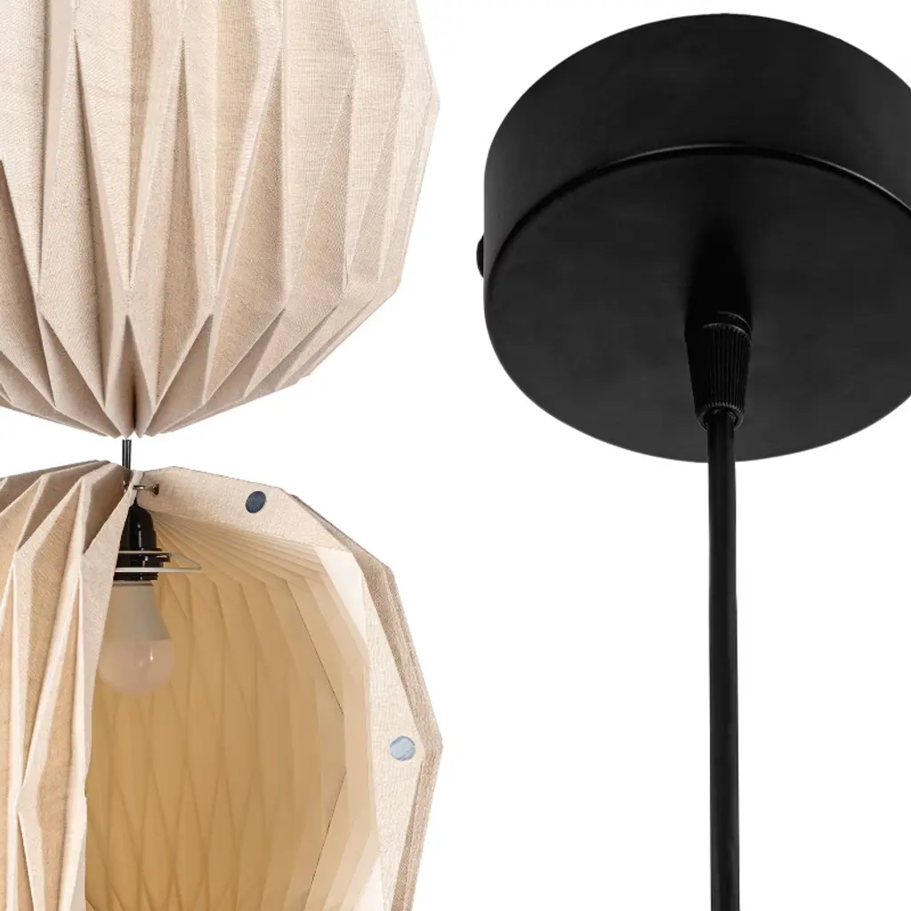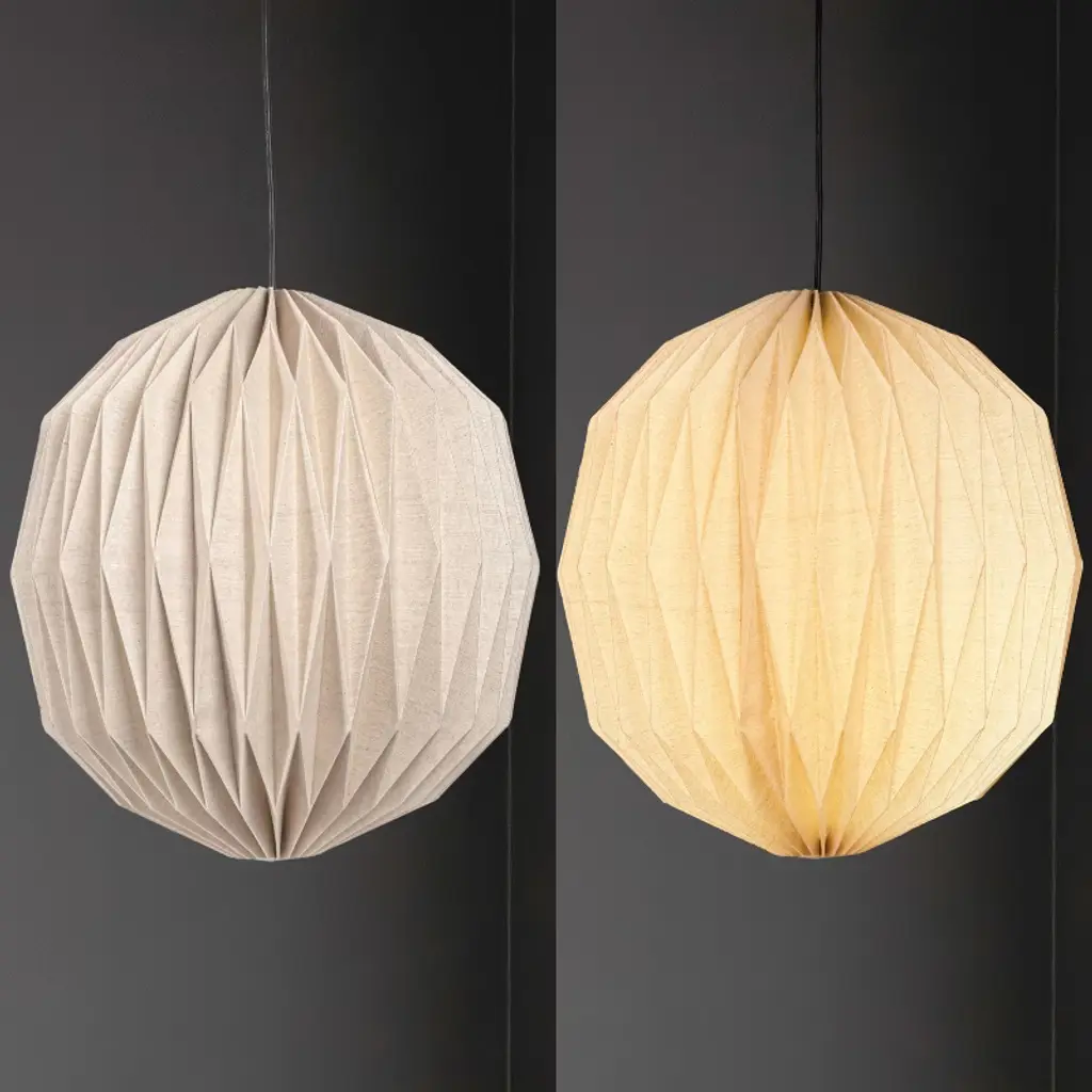 Give any dining room, living room or bedroom a modern look with this vintage-inspired pendant light. The LED bulb is filtered by a fabric shade to create soft, warm light. The pendant's distinctive honeycomb design makes a bold statement in almost any space.
