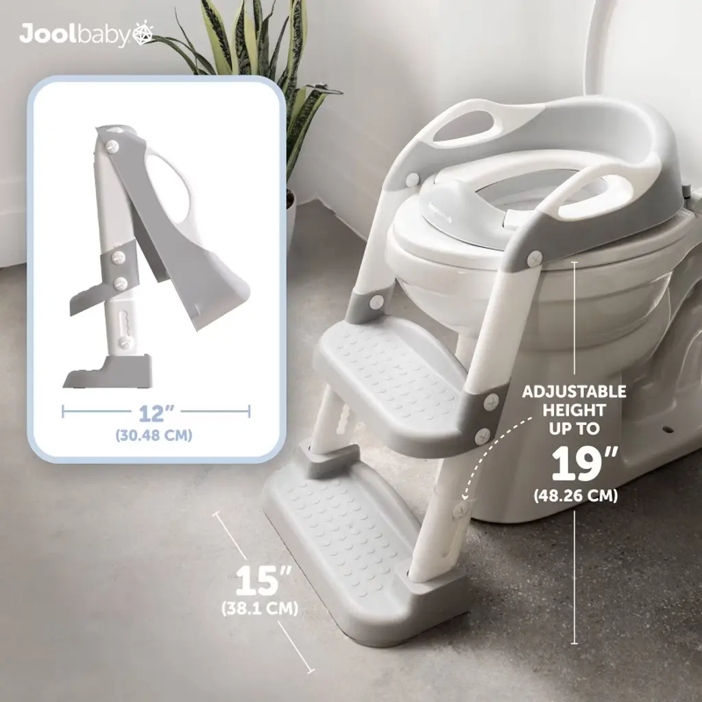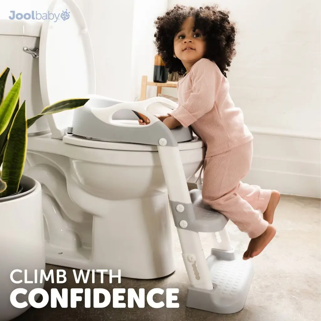 Jool Baby’s unique potty ladder combines a user-friendly potty with a convenient ladder. The potty features a soft cushioned seat and handles for added stability and convenience. The non-slip texture on the bottom keeps the seat steady, further promoting stability and confidence. The ladder also features two steps and an adjustable height, making it compatible with any home toilet. Plus, this product folds up for easy storage when not in use. We at Jool Baby love creating innovative and helpful parenting products, and the Potty Ladder is a perfect example of one such item.