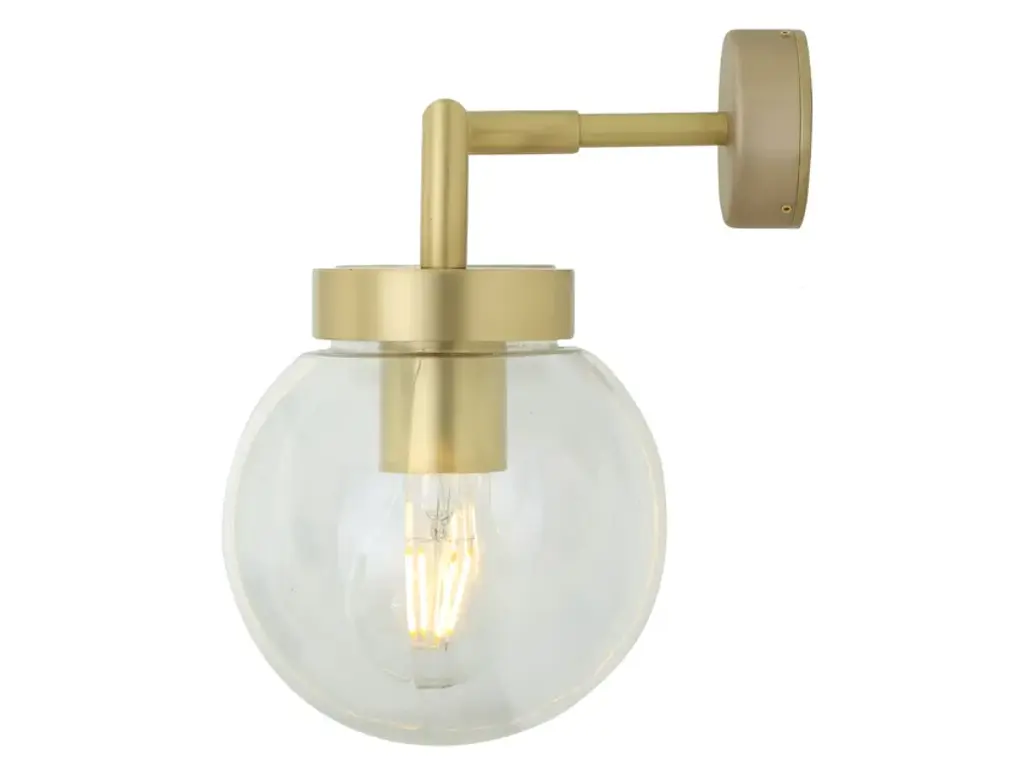 The JORDAN DOUBLE is a wall light with two 15cm glass lamp shades. The glass lamp shades can be clear or opal colour. A brass sleeve protrudes perpendicularly from the JORDAN DOUBLE's wall bracket before joining another horizontal brass sleeve parallel to the wall. From here two sealed brass galleries are attached a right-angles to horizontal sleeve. The brass galleries safely and securely hold both glass globe lamp shades in place. The JORDAN DOUBLE wall light can be installed with the globe shades facing downwards to the floor or upwards to the ceiling, depending on the direction that the majority of light is to be shone.The JORDAN DOUBLE wall light is available in antique brass, antique silver, polished brass or satin brass. Bulbs are sold separately.Max Wattage: 2x 40WLampholder: E27 | Plastic | ES | Edison Screw | 2 Core CableVoltage: 220V/240VIP Rating: IP65Protection Class: Class IGlass Code: GL166 | GL167