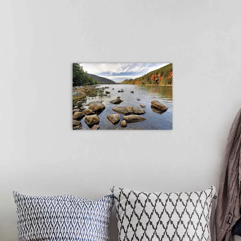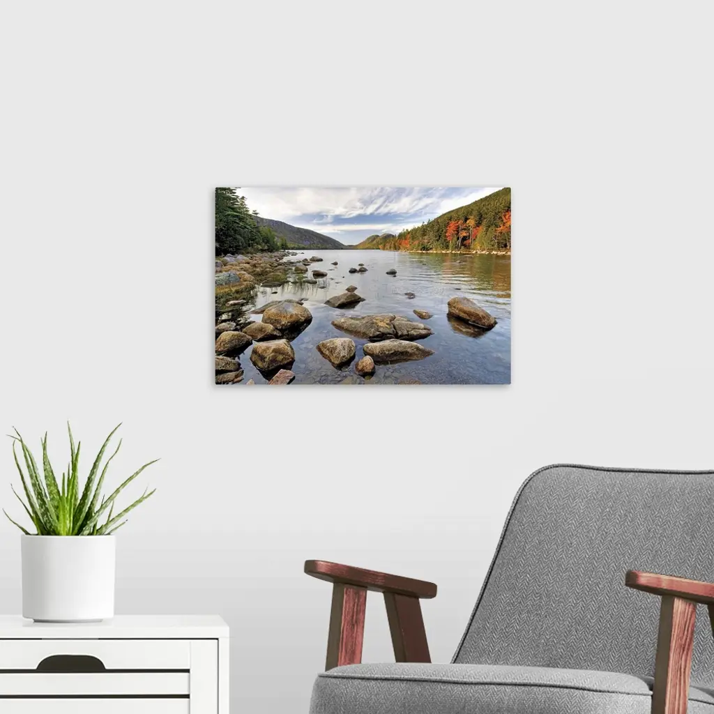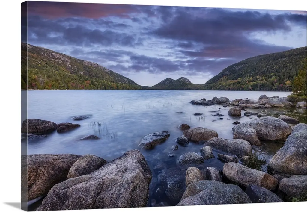 Boulders with North and South Bubble Mountain, Jordan Pond, Acadia National Park, Maine