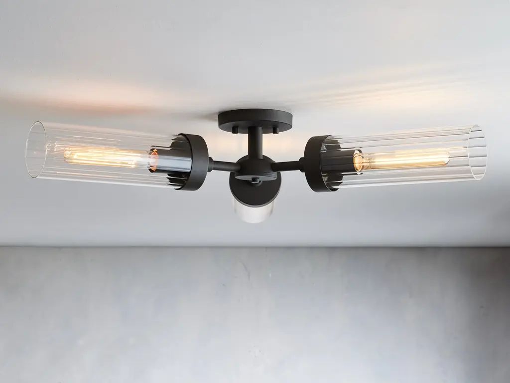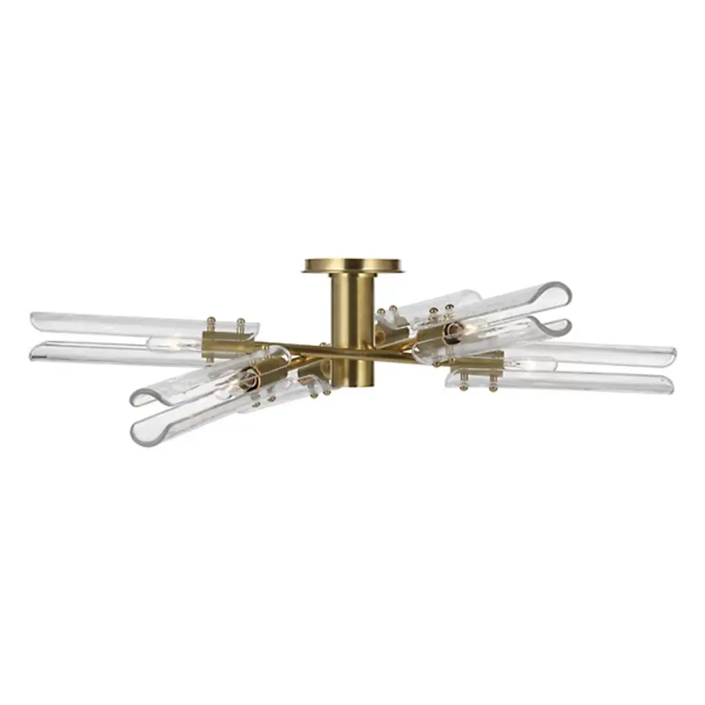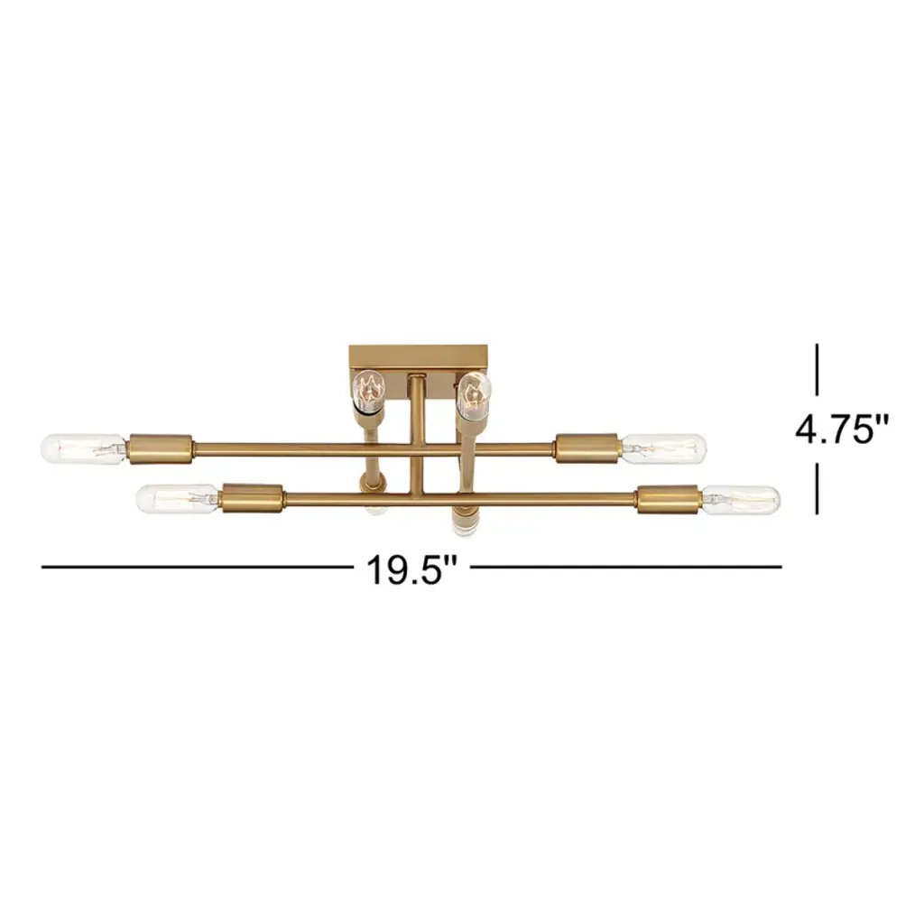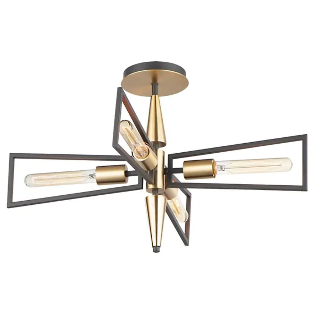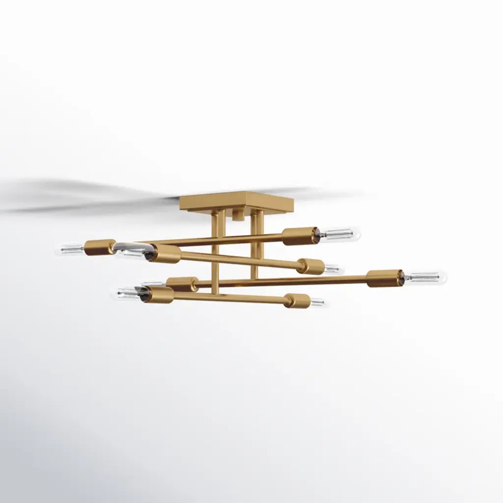 A pared-down take on the iconic sputnik chandelier, this semi-flush mount brings space-age style to smaller spaces. Its six asymmetrical arms meet at right angles around a square backplate; each holds two bulbs. Install it with a dimmer switch for ambiance options.