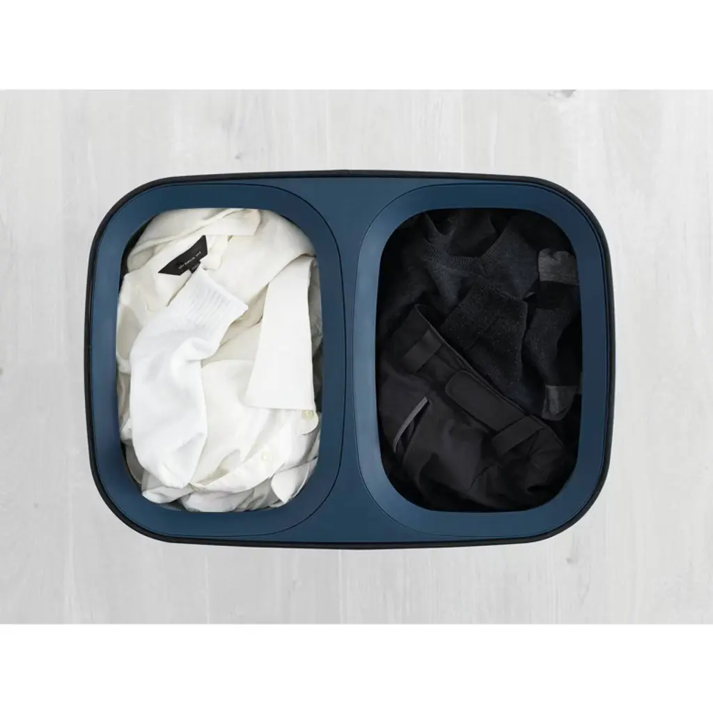 This smart laundry basket features a host of practical features that help make wash day less of a chore. Beneath the lid it has two 45-litre fabric tote bags allowing you to separate washing into light and dark/colored fabrics. Each bag has handles at the top enabling you to conveniently lift and carry it straight to the machine and a helper handle on the base to make emptying easier. When replacing each bag in the basket there’s no fiddly ties or buttons to do up either as the self-locating rim ensures it drops perfectly back into place, ready for the next load. The stylish fabric exterior is designed to compliment a range of interior styles and decors making it perfect for storing in the bathroom, bedroom or utility room. Comes flat-packed with full assembly instructions.