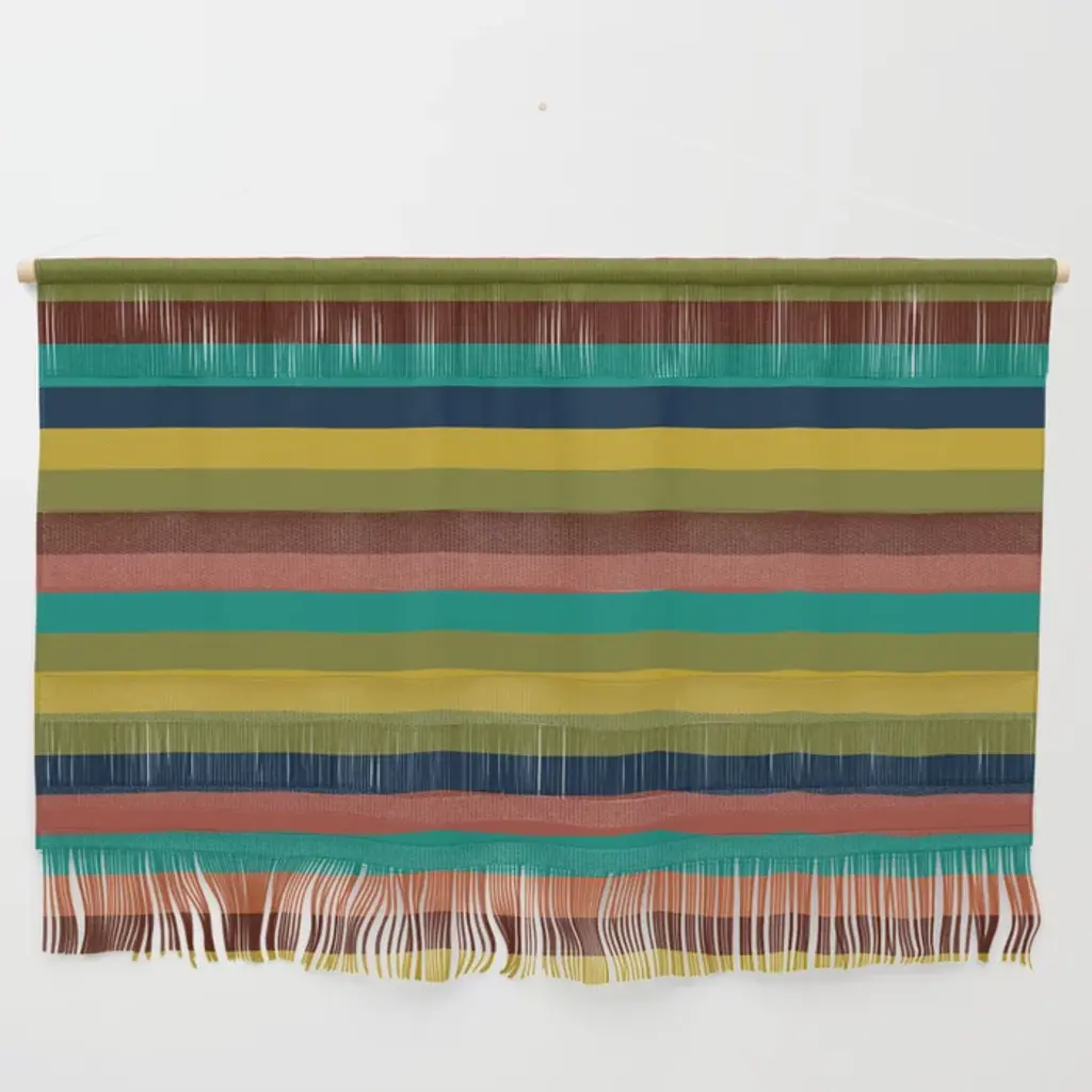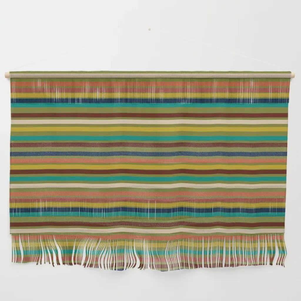 Joseph Stripes Vertical - Mid Century Mod Stripe Pattern In Teal, Olive, Maroon, Navy, Orange, And Mustard Wall Hanging