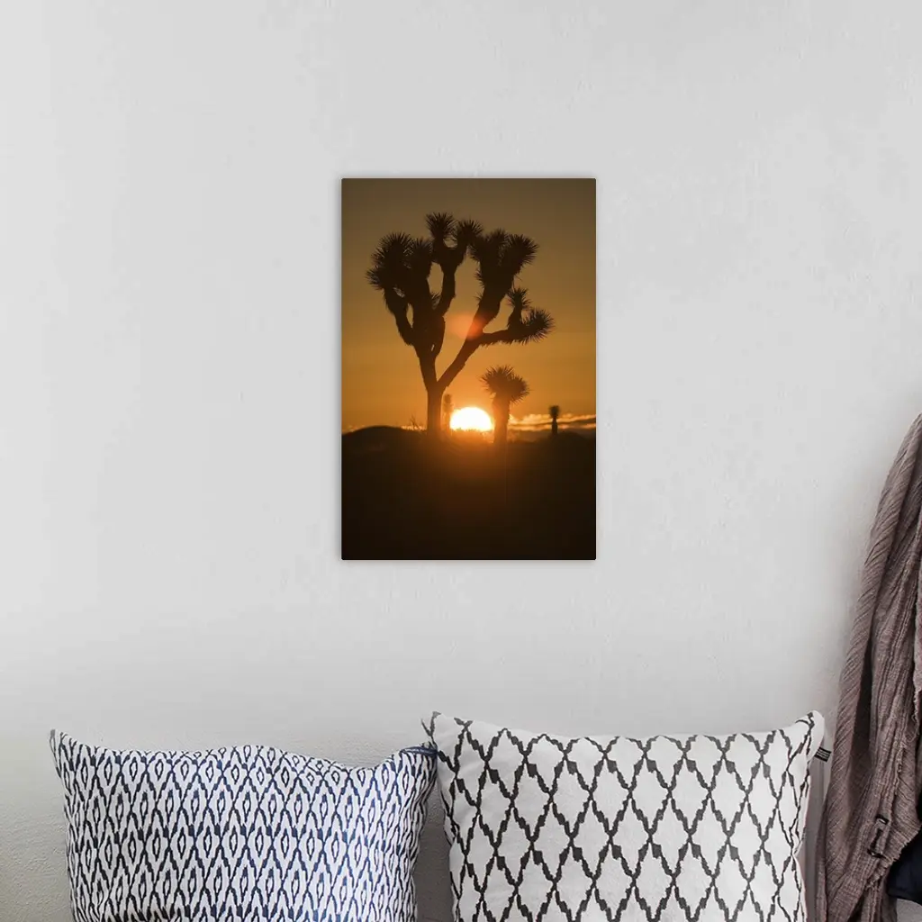 Tall canvas of trees in the desert silhouetted against a setting sun.