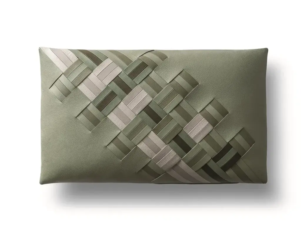 Like a refined leather-bound travel diary, the collection of Journey decorative cushions celebrates the atmospheres and memories of once-visited places, summarising them in a sensitive and cultured account notable for its vivid colours. Designed for Poltrona Frau by Giulio Ridolfo in collaboration with Chiara Novello, the Journey decorative cushions depict the fields parched by the sun, the natural flow of watercourses and the yards of villages lit up by lanterns through a precious 3D-effect geometric weave. The Journey cushions are covered entirely in Pelle Frau SC leather and celebrate the new Colorsphere® system with three different multicolour proposals: Pier 1 is dedicated to the range of greens, Tannery to natural leatherware colours and Gion to shades of violet and dark blue. The fronts of the cushions are distinctive for their handwoven strips, which embody the time-honoured traditions of the leathercraft industry. Every strip consists of three leather laces in progressive shades of colour. All of the Journey decorative cushions are available in the sizes: square with 47 cm sides and rectangular, 35x57 cm.