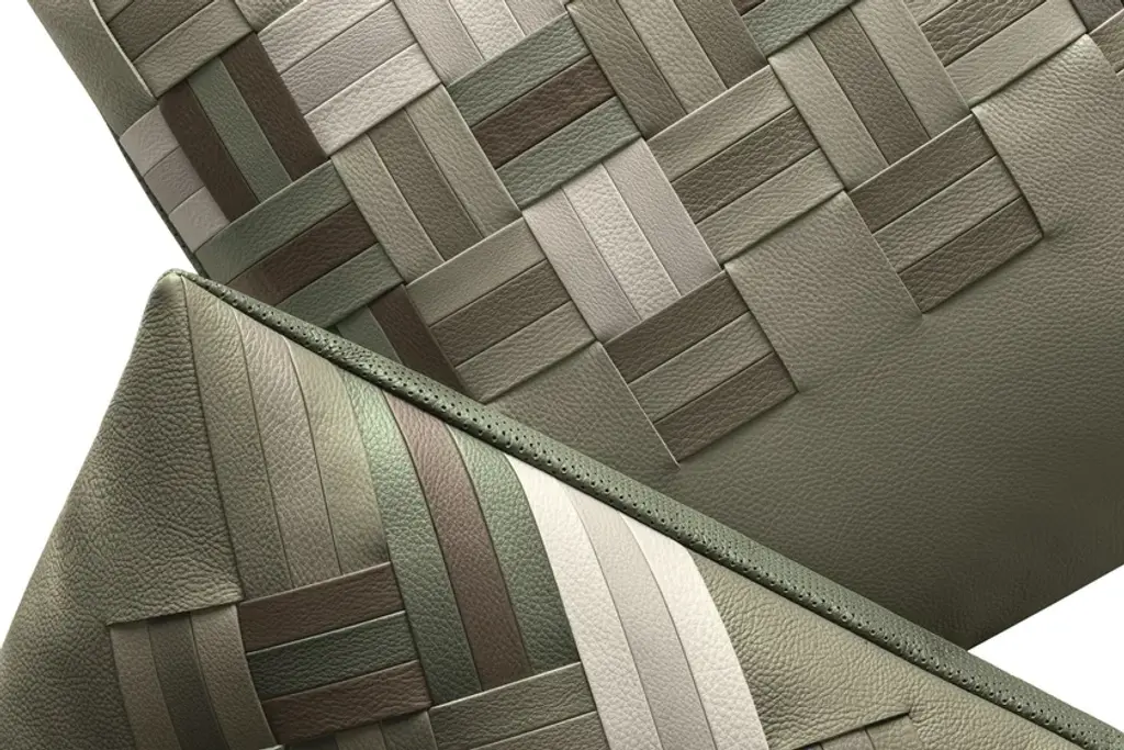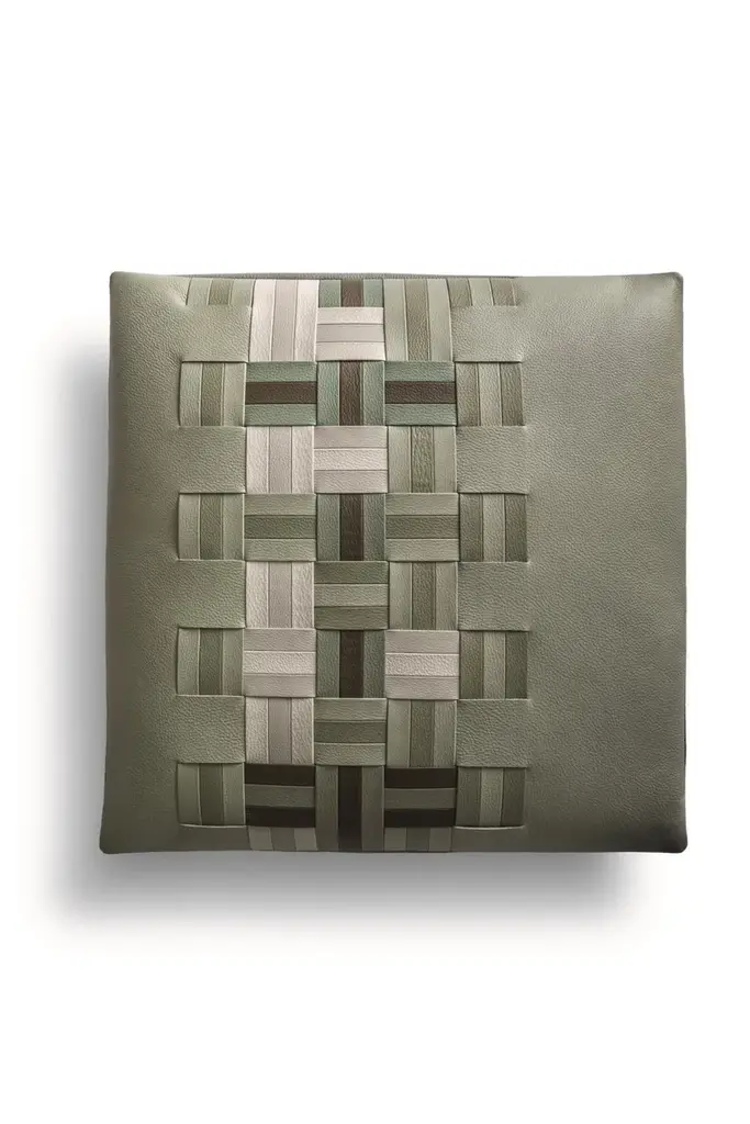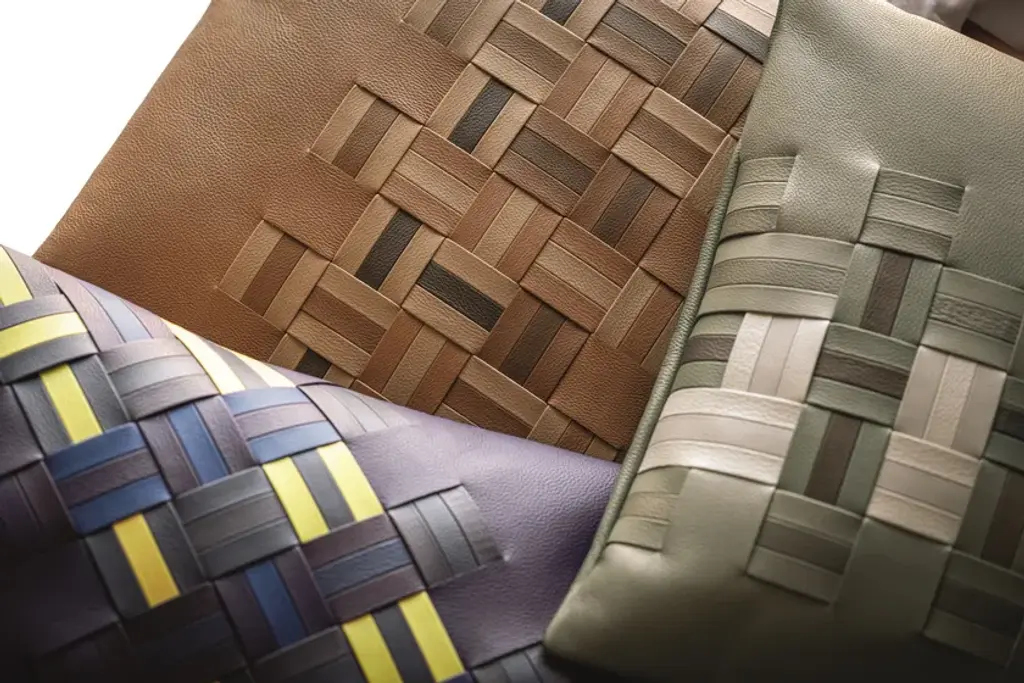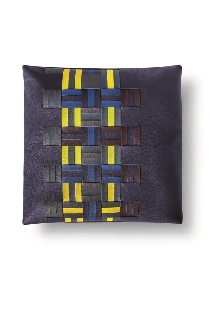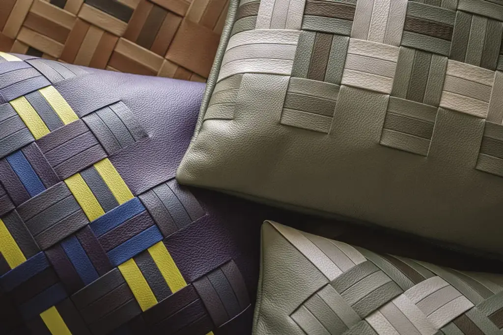 Like a refined leather-bound travel diary, the collection of Journey decorative cushions celebrates the atmospheres and memories of once-visited places, summarising them in a sensitive and cultured account notable for its vivid colours. Designed for Poltrona Frau by Giulio Ridolfo in collaboration with Chiara Novello, the Journey decorative cushions depict the fields parched by the sun, the natural flow of watercourses and the yards of villages lit up by lanterns through a precious 3D-effect geometric weave. The Journey cushions are covered entirely in Pelle Frau SC leather and celebrate the new Colorsphere® system with three different multicolour proposals: Pier 1 is dedicated to the range of greens, Tannery to natural leatherware colours and Gion to shades of violet and dark blue. The fronts of the cushions are distinctive for their handwoven strips, which embody the time-honoured traditions of the leathercraft industry. Every strip consists of three leather laces in progressive shades of colour. All of the Journey decorative cushions are available in the sizes: square with 47 cm sides and rectangular, 35x57 cm.