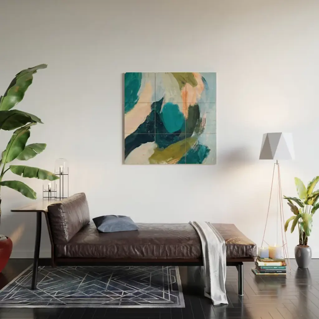 Make your own mosaic. With our wood wall art's multi-square design, you have the power to adjust the spacing between each section to form exactly the right look. Play around with the designs by removing a panel in strategic locations or arrange them around another piece to fill out the look. Available in three sizes.