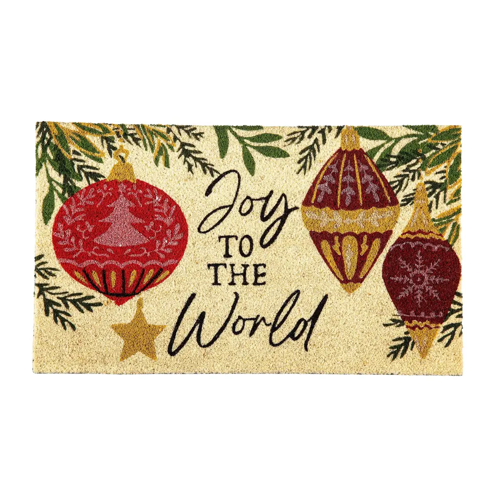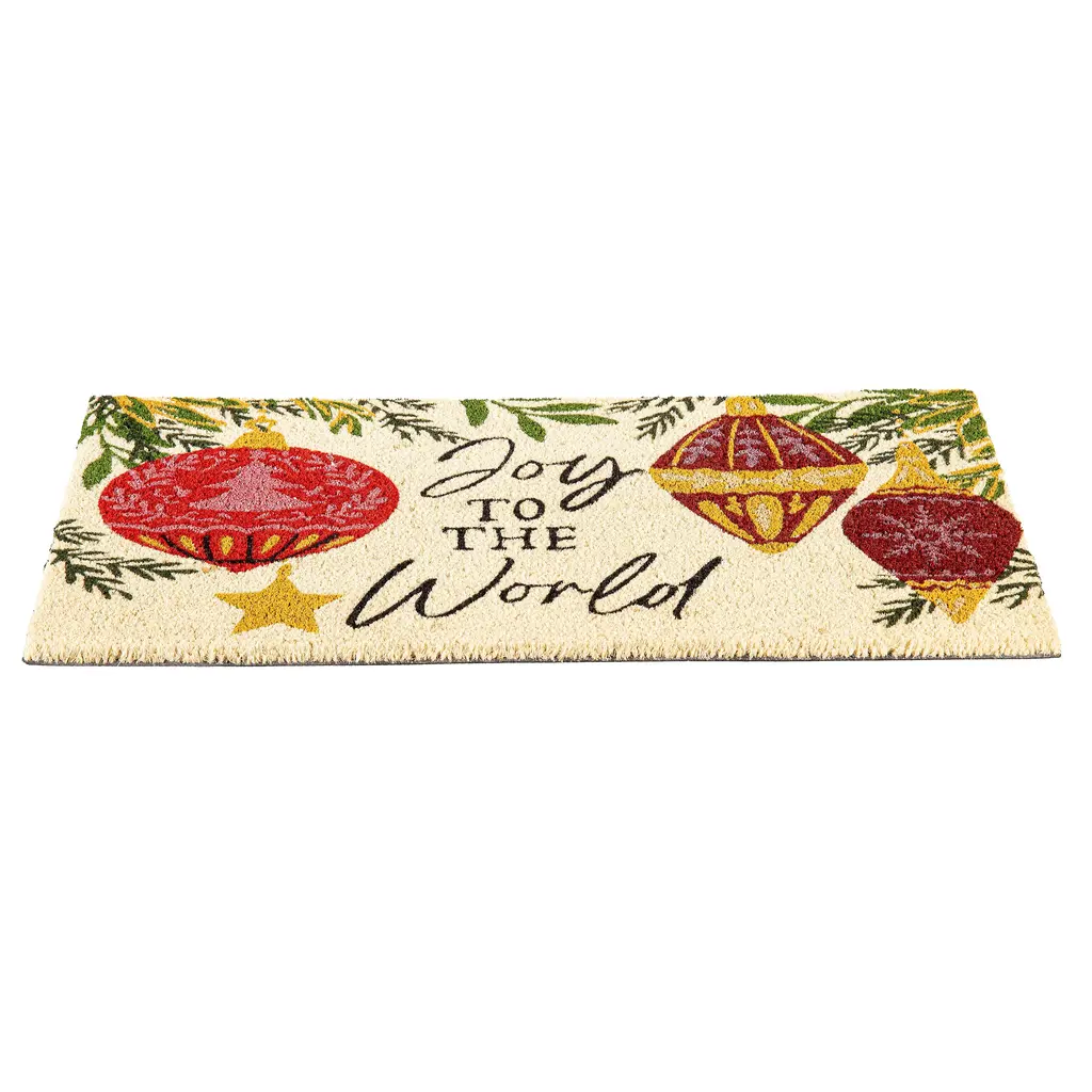 Step into winter style with this coir mat. Perfect for adding an extra charming touch to any entryway, this welcoming design features stunning ornaments hanging from a Christmas tree. Crafted from coco husk fiber, the eye-catching mat is natural and eco-friendly. Ideal for high-traffic areas, the mat traps dirt and debris to prevent messes from being tracked into homes. Designs are printed directly on the mats with fade-resistant dyes. Since the mat is crafted from natural coir, some shedding is to be expected. Shake off excess fibers or use a soft brush to gently sweep.