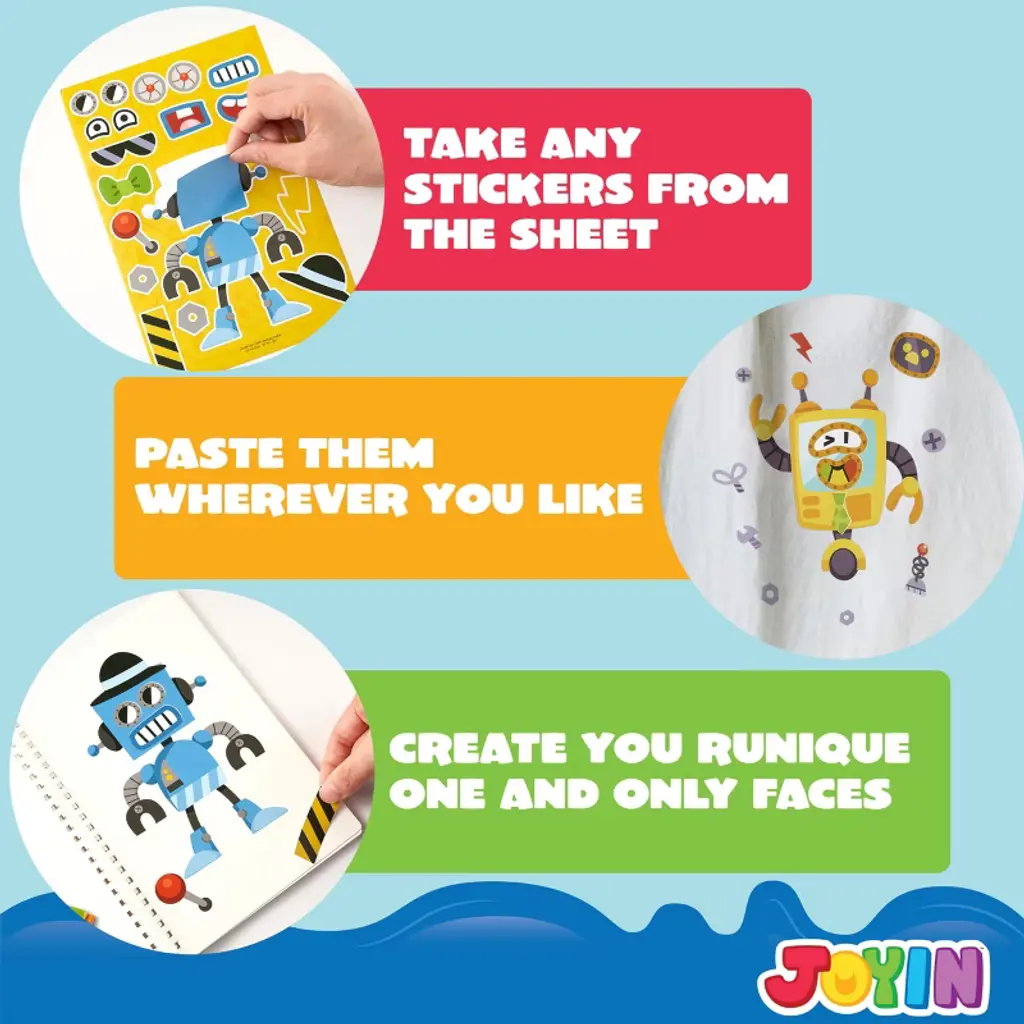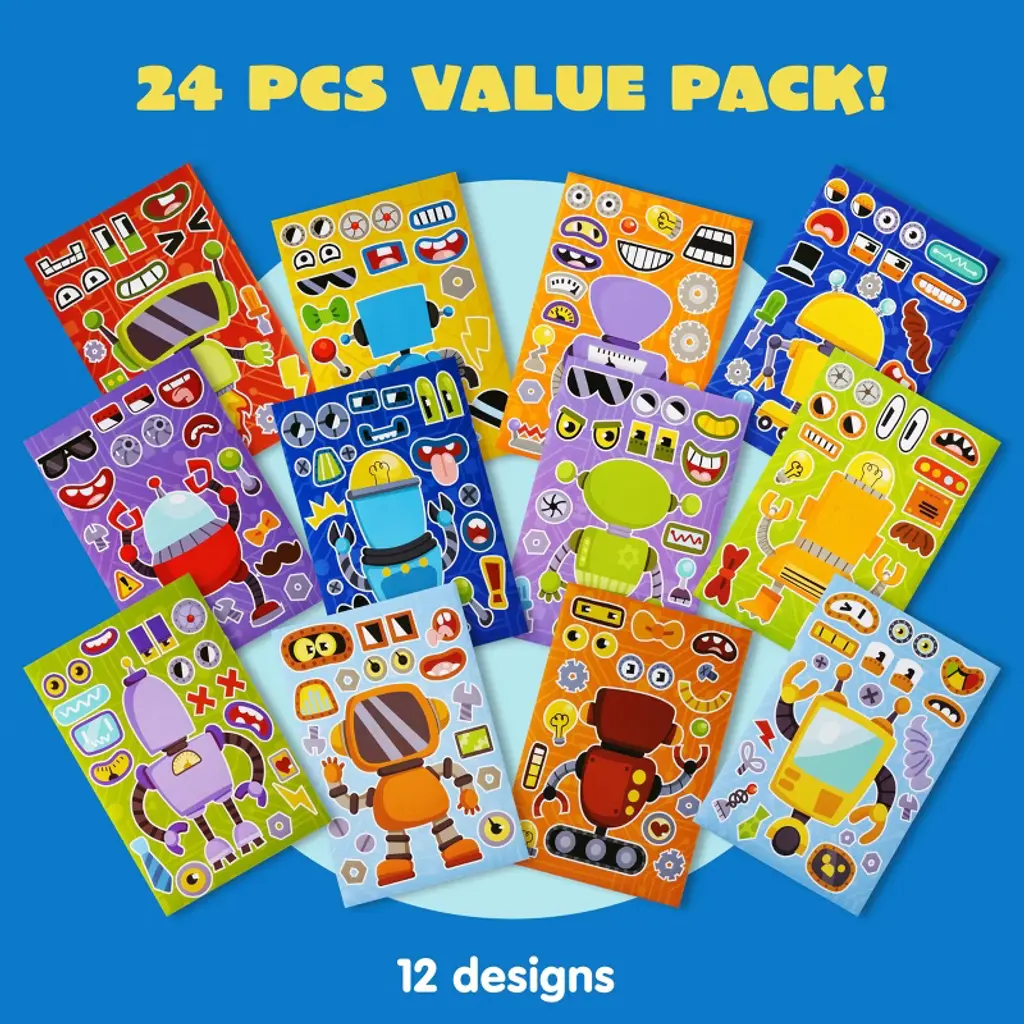Joyfy 24 Pcs Make A Face Stickers For Kids 9"x6" Make Your Own Robot Stickers Party Favors Kids Crafts Goodie Bags Stuffers Classroom Activities
