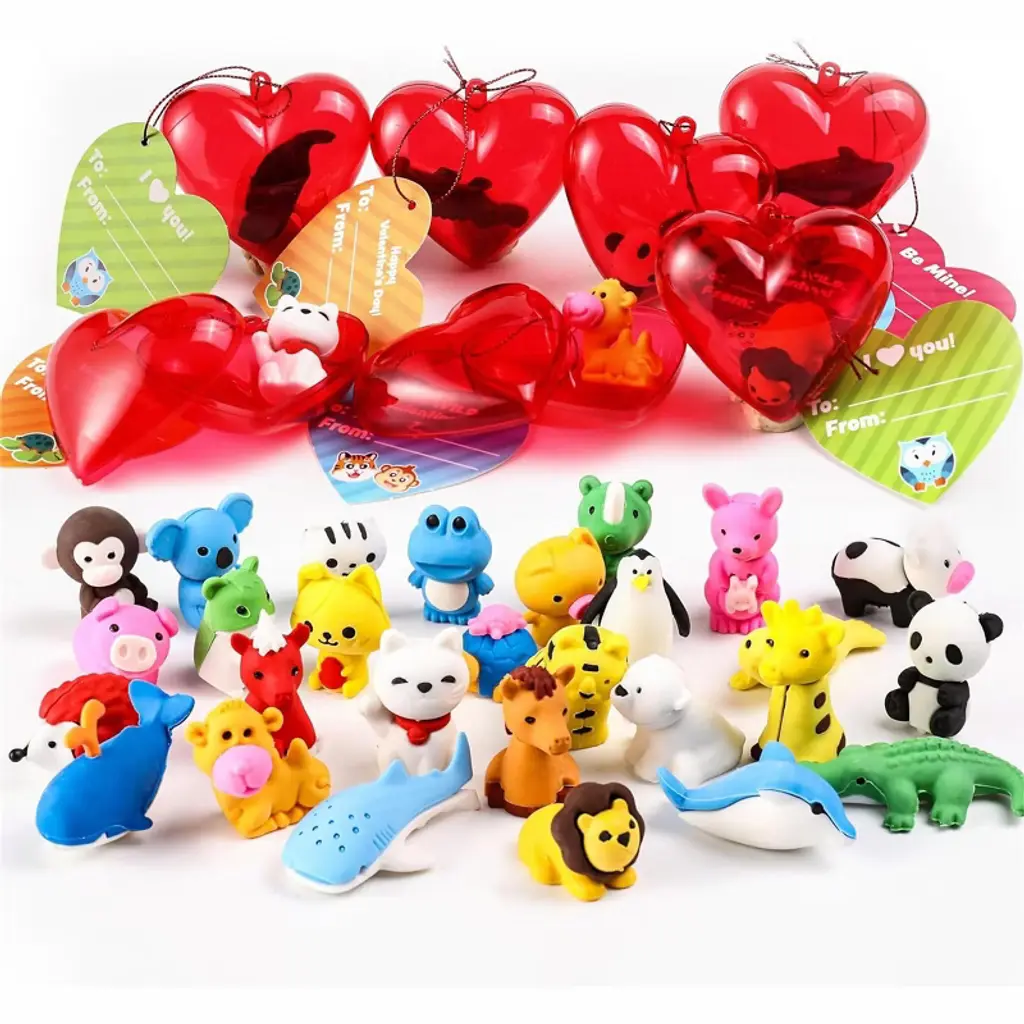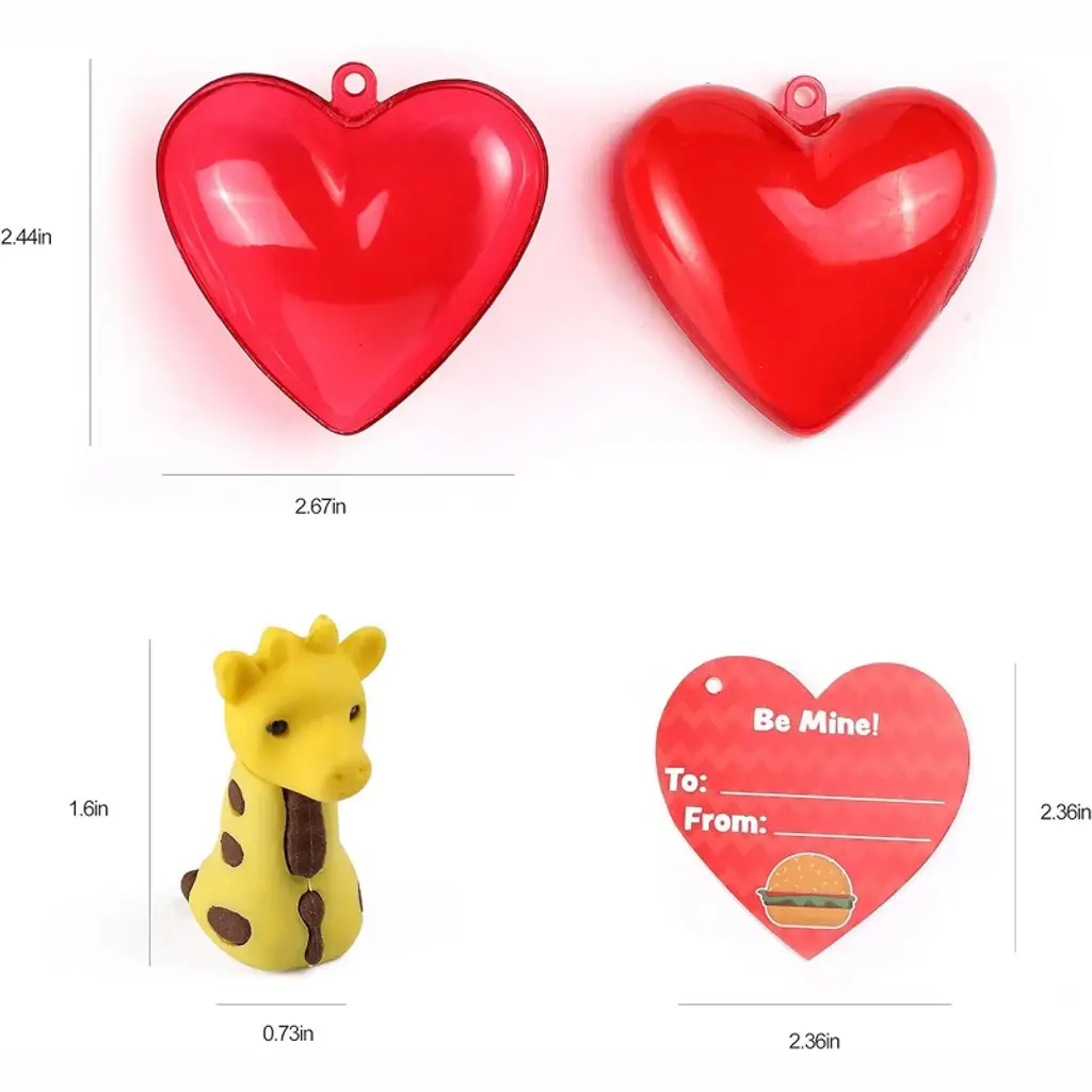 Our Comprehensive Valentine Party Favors Set is a treasure trove of cuteness, featuring 28 adorable puzzle animal erasers in a random mix of designs and colors, 28 red heart cases, and 28 Valentine cards with 4 different designs. These Cute & Fun mini animal figure erasers, which can be taken apart and reassembled like a puzzle, are pre-filled into translucent plastic red heart shells, accompanied by thick paper heart-shaped Valentine’s cards. They not only encourage the development of social skills but also provide a delightful way to express gratitude to family, friends, and classmates. Ideal as a Gift, this unique set adds excitement to any occasion, offering the perfect mini toys with greeting cards for children who adore something cute and extra special, and it’s also great for classroom exchange gifts or as small toy prizes for classroom parties and other activities. Ensuring Child Safety, our products are non-toxic, safety test approved, and meet US Toy Standards.