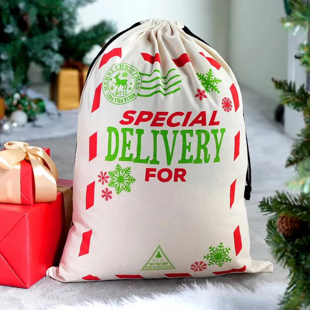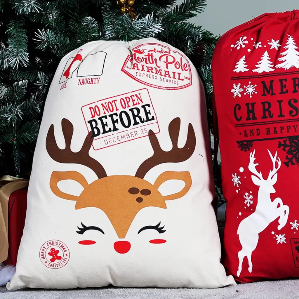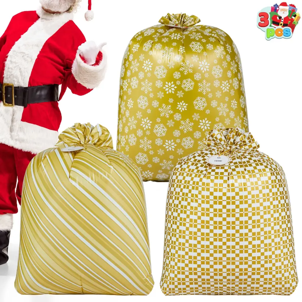 Our jumbo 3-pack Christmas Santa sacks make holiday gifting easier and more festive than ever! Each 26"x19" burlap gift bag features charming designs with a special writable space for names or holiday wishes, adding that extra personal touch to every present. Perfect for stuffing with toys, treats, or surprises, these durable drawstring sacks save you time on wrapping while creating that picture-perfect Christmas morning moment. Use them as holiday decor under the tree, for classroom gift exchanges, or even as festive party favor bags—they’re as versatile as they are merry! Made from heavy-duty, non-toxic materials, these sacks are built to handle Santa’s heaviest deliveries while keeping safety in mind. Whether you’re playing Santa’s helper or hosting a holiday party, these reusable sacks bring Christmas cheer to every celebration.🎄✨