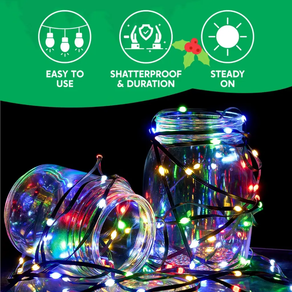 Transform your holiday setting into a vibrant and joyful spectacle with our multicolor christmas string lights. These festive lights add a burst of color and cheer to your indoor or outdoor decor, creating a dazzling ambiance that perfectly captures the spirit of the season. With an array of vivid hues, including red, green, blue, and more, these lights offer a playful and versatile way to illuminate your Christmas tree, mantel, or outdoor spaces. The energy-efficient LED technology ensures a brilliant and long-lasting glow, making these multicolor string lights a cost-effective and environmentally friendly choice for your holiday lighting needs. Enhance the magic with our vibrant multicolor string lights, and let the colorful radiance transform your space into a festive wonderland.