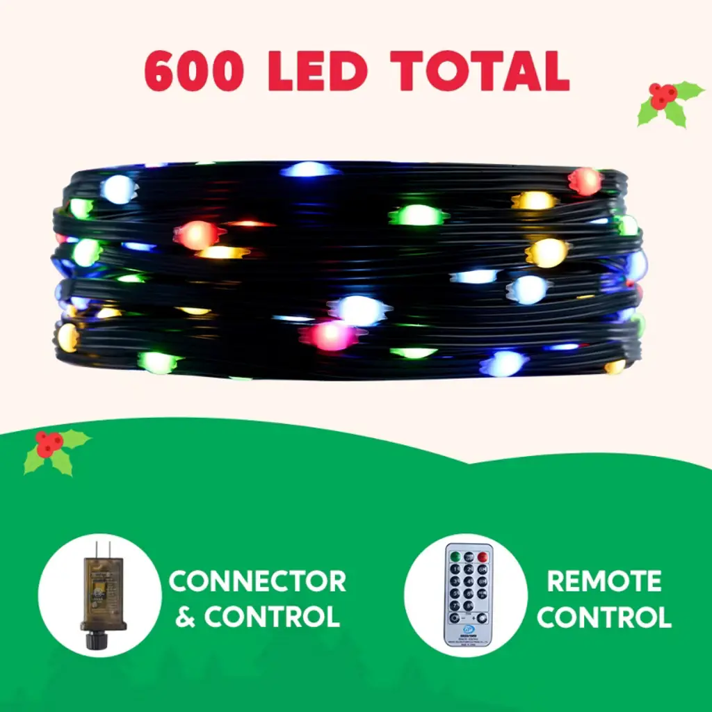 Joyfy 600 Led 198 Ft Christmas String Lights Outdoor With 8 Modes Timer, Pvc Green Wire String Lights With Reel For Indoor Outdoor Xmas Decorations