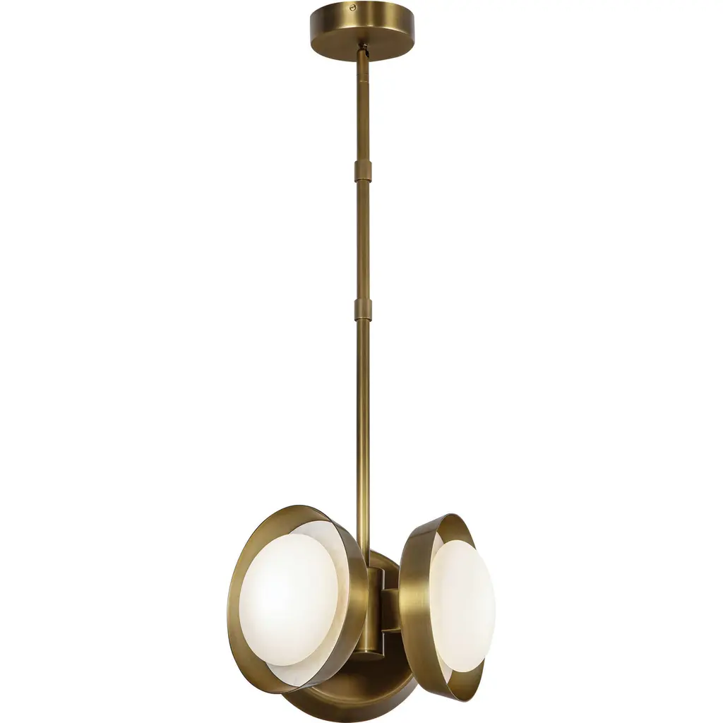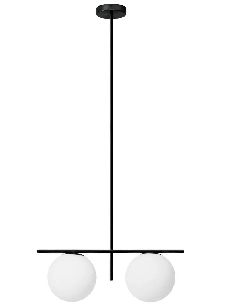 Jugen is a 2-light suspension lamp made of milky white blown glass with a black painted frame and brushed brass. The ceiling rose is in brushed brass, petrol or black.Technical information:- Light source: E27- Power: 2 x max 40w