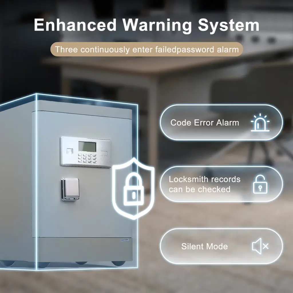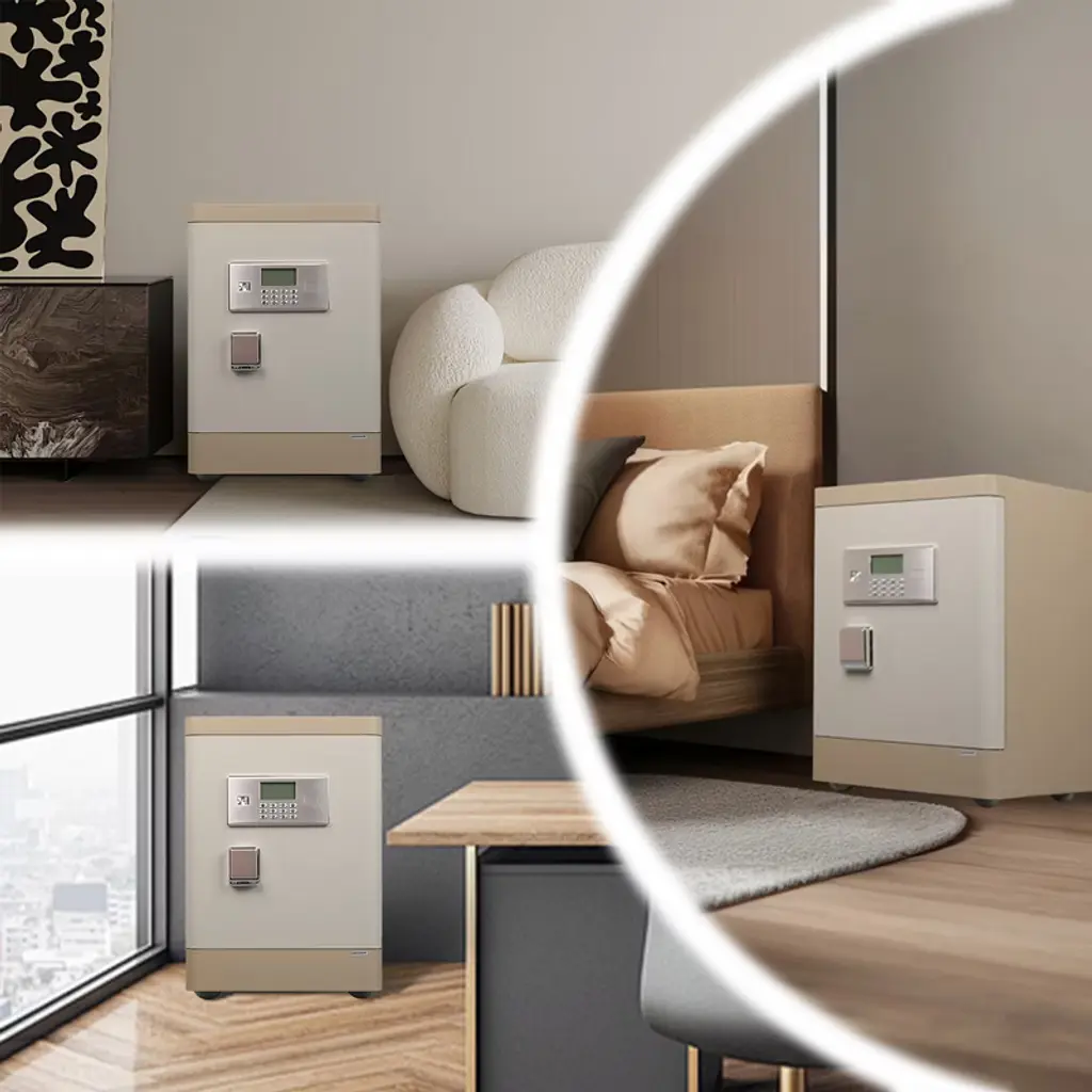 This 23.6-inch security safe combines functionality and mobility with a sleek design available in beige or black. Equipped with four smooth-rolling wheels, it can be effortlessly moved and used as a bedside table or placed in the living room, office, or bedroom. The safe includes an internal lockable compartment, an external battery pack, and a fireproof document bag for added convenience and protection. Its triple-sided bolt locking system and vibration detection ensure reliable anti-theft performance. In case of three incorrect password attempts, a loud alarm activates for one minute to deter unauthorized access. With features like door opening record tracking and flexible storage, this safe is ideal for keeping your valuables secure and organized.
