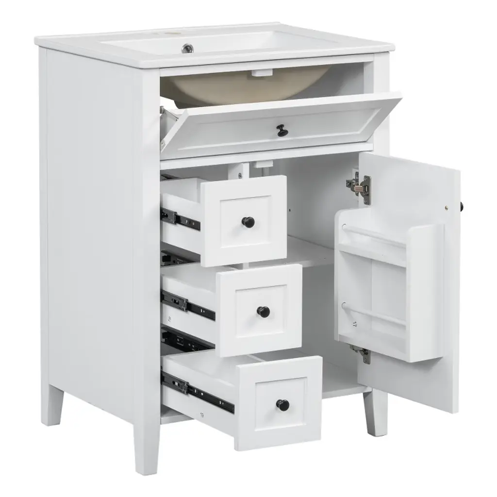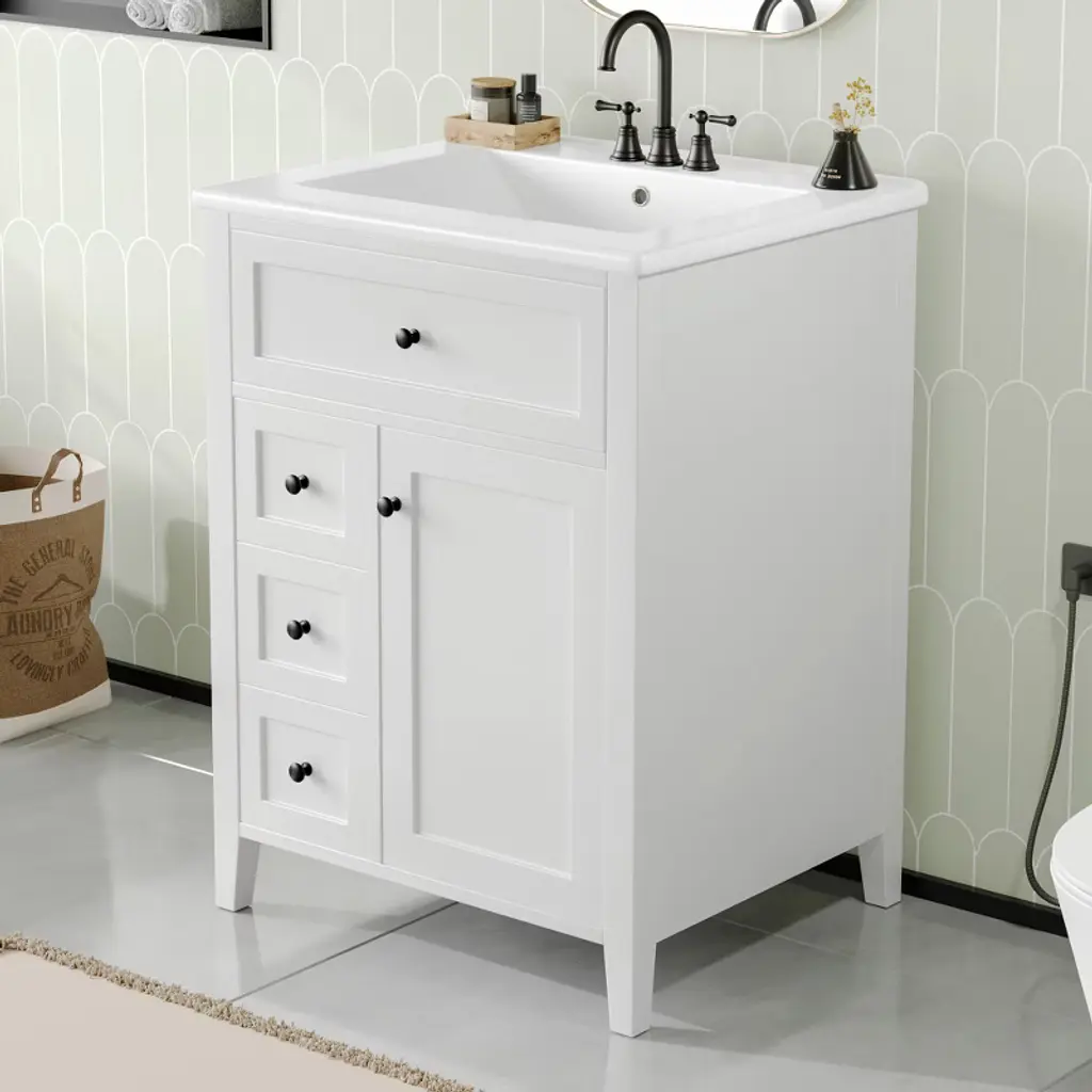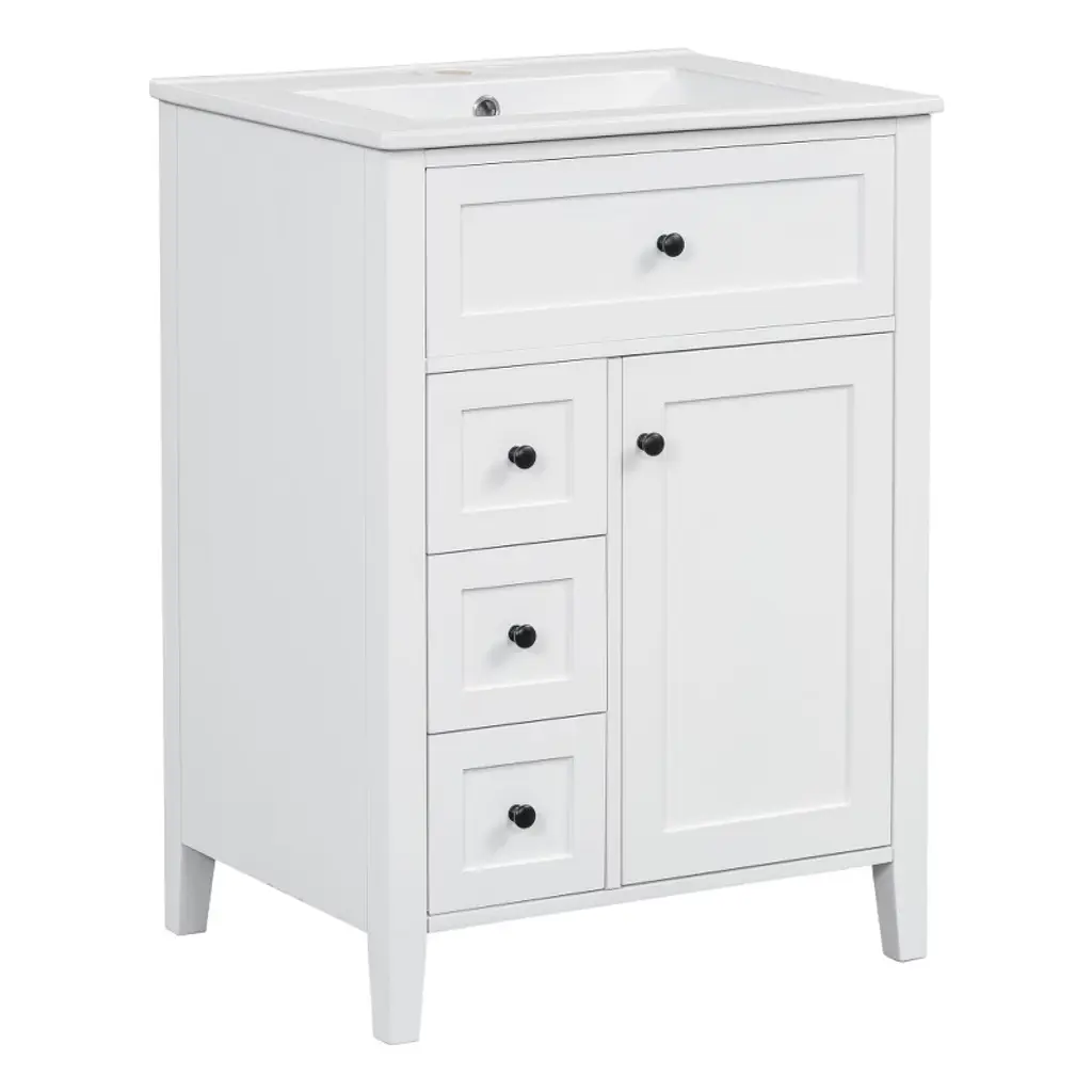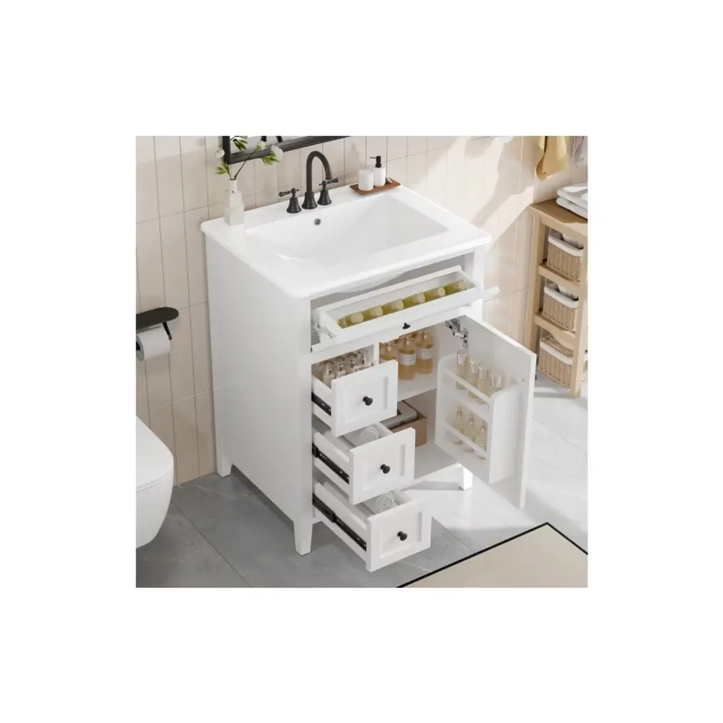 Jujabu 24" Modern White Vanity With Sink, 3 Drawers & Adjustable Storage For Small Bathrooms
