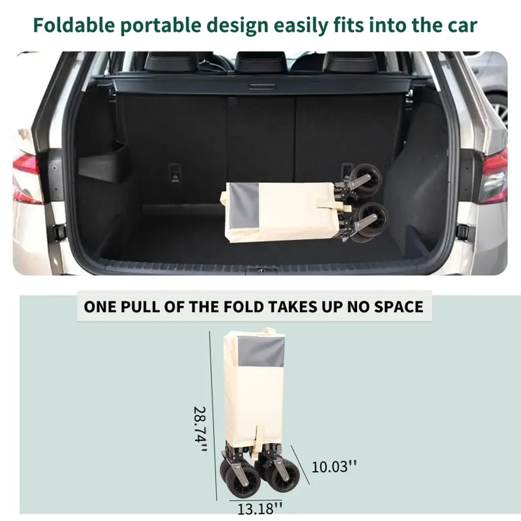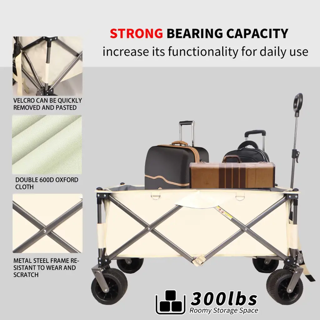 Jujabu Folding Heavy-duty Outdoor Cart With Adjustable Handle And Cup Holders For Beach, Camping, Garden - Antique White