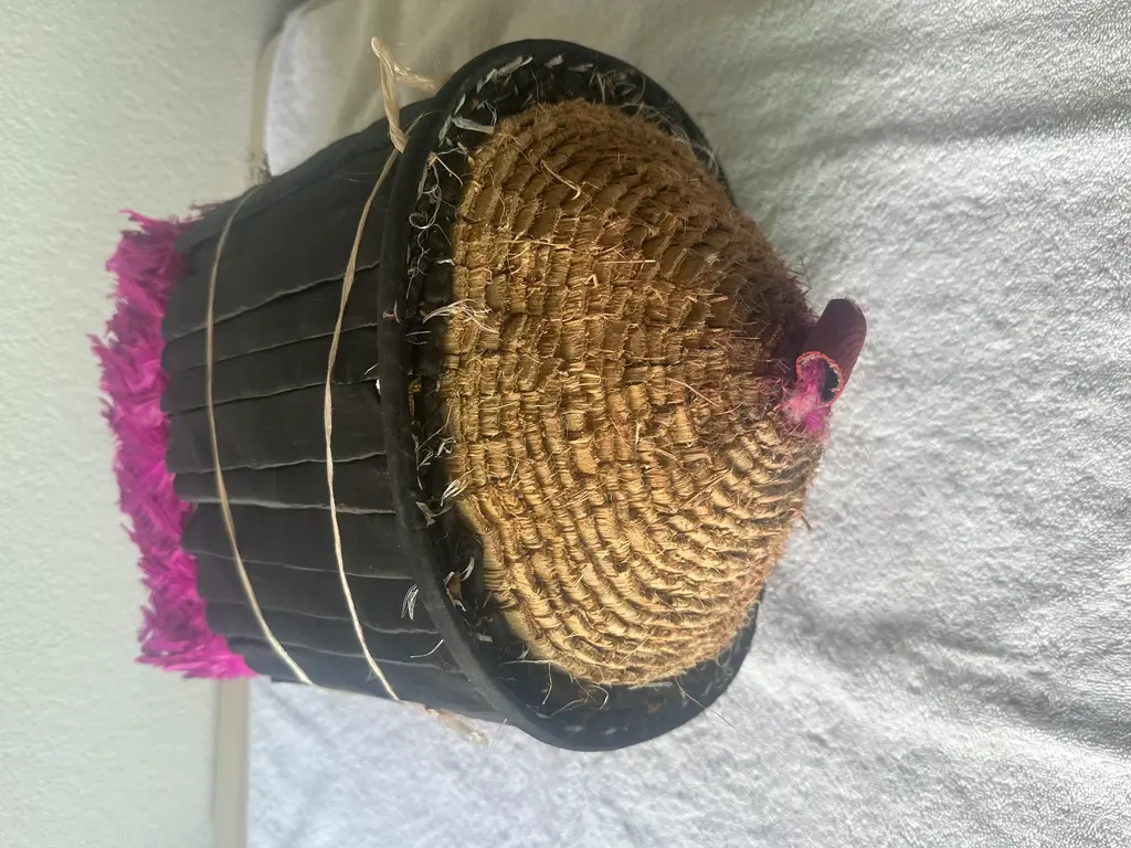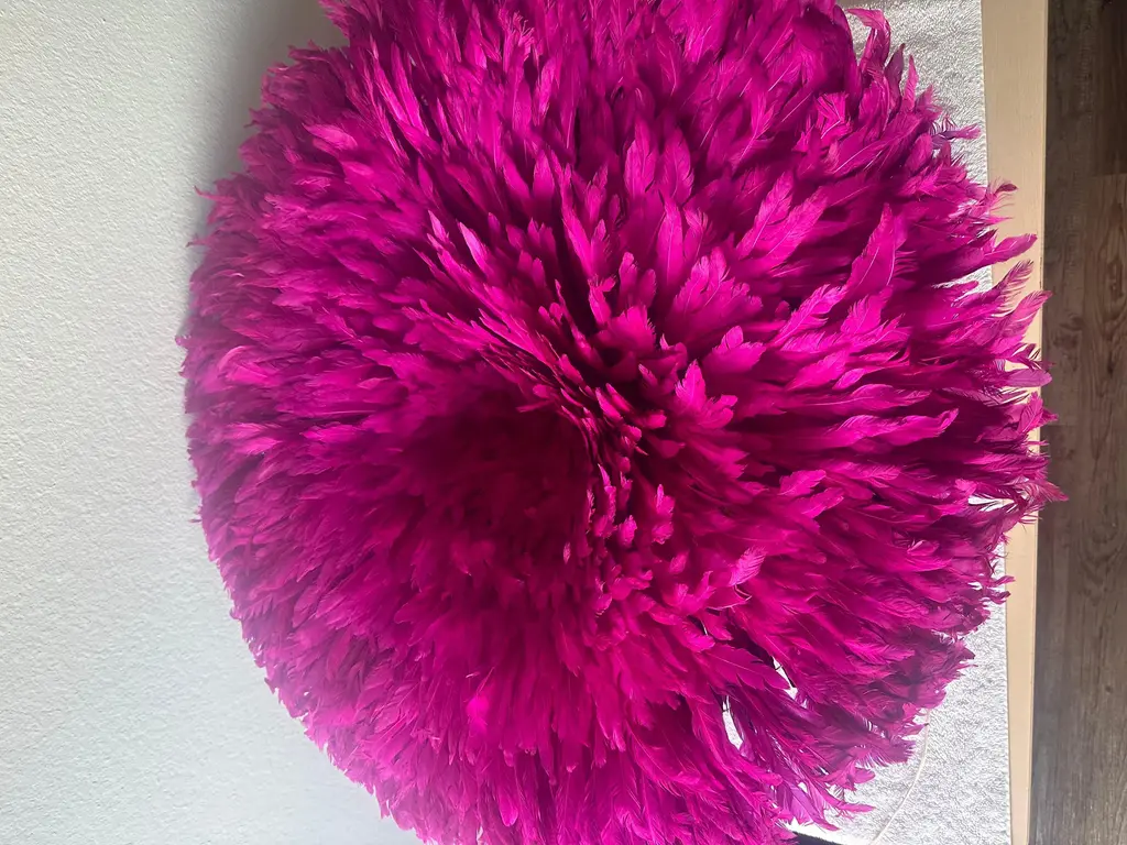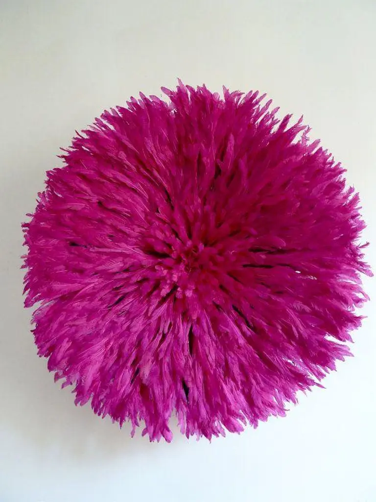 Introducing PicoArts - Home Decor, the ultimate piece of handmade wall hanging that will take your home's decor to the next level! This beautifully designed juju hat, crafted by the Bamileke tribe in Cameroon, symbolizes love and prosperity. From its origins in cultural protection and heritage, this piece has been modified to suit modern interior designs. Whether you're moving to a new apartment or just looking to add a touch of elegance to your space, this fuchsia pink juju hat home decor is a perfect choice. Trust us, PicoArts - Home Decor will leave your guests in awe and your home looking stunning forever!