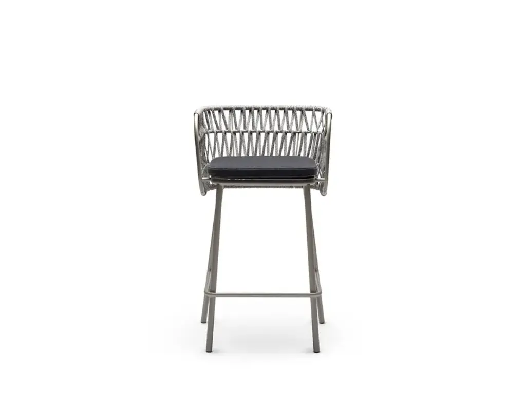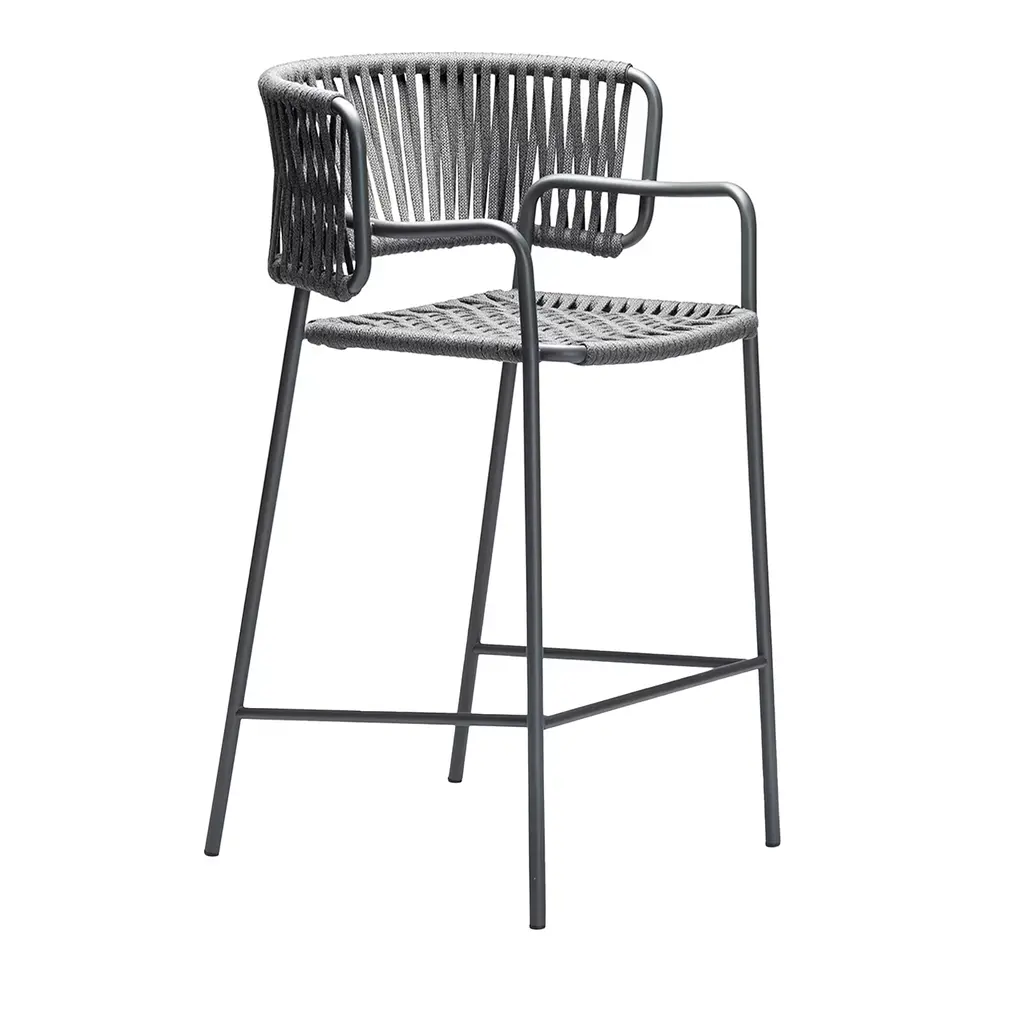 The materials and finishes are made for outdoor use such as galvanised paint, larch laminate, nautical rope weave and fabric tested for resistance to UV rays and humidity. However, the original and refined material research also makes the Jujube collection an authentic furnishing accessory for indoors with its upholstered quilting and wide range of coloured fabrics that adapt to different interior design styles.Extremely flexible in its modularity, Jujube is also very eclectic in its variety of finishes. Indeed, there is a wide choice of colours and types of upholstery for the sofas and even more so for the armchairs. From the metal or woven version, indicated precisely for outdoor use, to the fully upholstered version. In the latter case, the backrest has quilting that perfectly echoes the graphic design of the backrest, making it even softer and more comfortable.Jujube , designed by 4P1B Design Studio is a full range of sofas, armchairs, ottomans and chairs inspired by a very distinctive graphic design.The tubular metal back identifies the entire collection and became an important decorative element that, depending on the version, manifests itself more or less relevant.The collection presents, in fact, in many variations that are obtained both in relation to selected finishes, both in relation to the way of combining the components.Jujube is actually a real compositional system of modular elements that are combined each other to create different types of seats. The sofa, for example, can be a two-seater sofa, with bench or ottoman, may have two backs or be asymmetrical, can be used indoor or outdoor, depending on the accessories and composition that can be chosen and integrated at any moment.