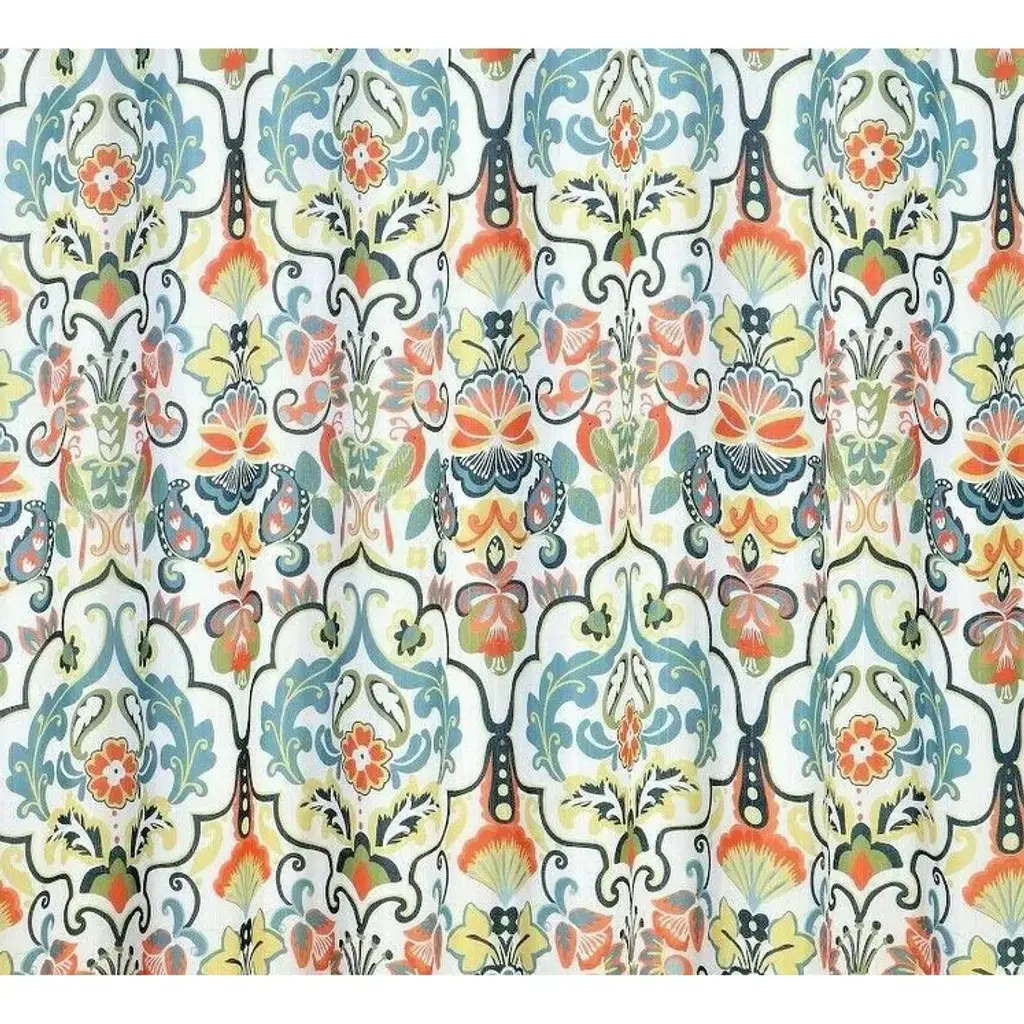 The Jules drape panel Collection complements the Levtex Home Jules collection. This is the perfect accessory for any bathroom. Sized at 55x84in., the drape panel design features a a swirl of damasks and medallions in playful colors. Made from 100% cotton, the Jules decorative curtains are easy to care for. These come with with a rod pocket ready for installation.