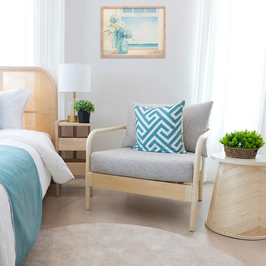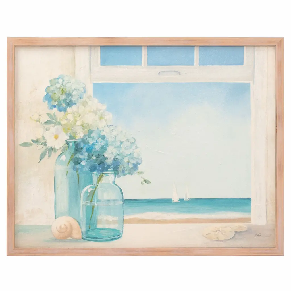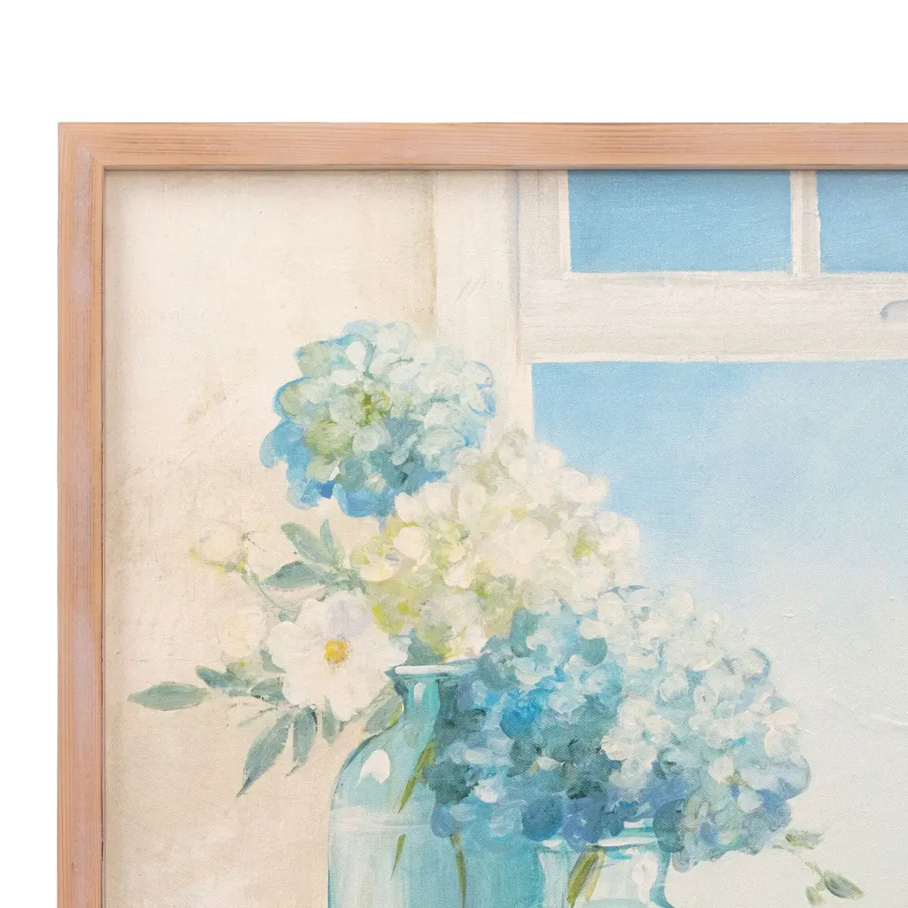 Seaside Hydrangea by Julia Purinton is an affordable, high quality piece of framed art. The finished size is 22W x 17H x 0.75D with a natural wood frame and clear brush strokes over the image. It has an attached sawtooth hanger for easy installation.