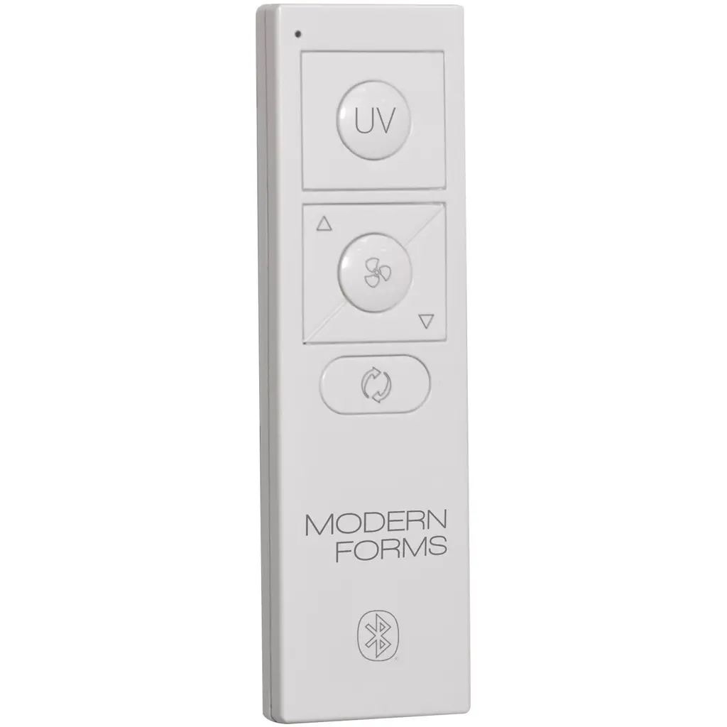Battery operated wireless Bluetooth remote control for Modern Forms Germicidal Smart Fans. Remote control is optional - each Modern Forms Ceiling Fan can be controlled through the free Modern Forms App available in the Google Play or App Store. This remot