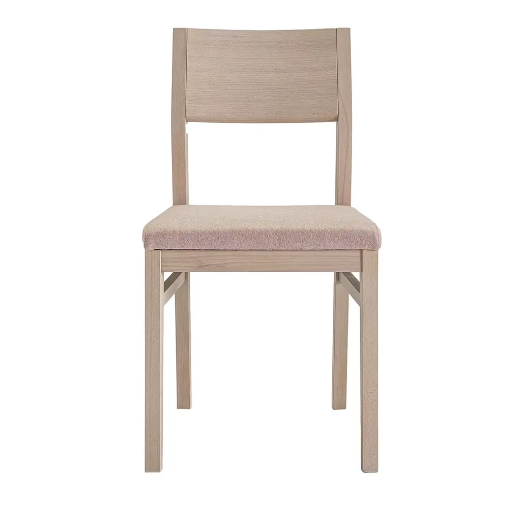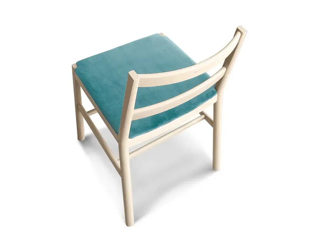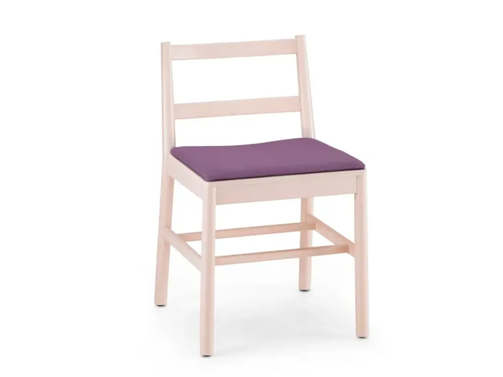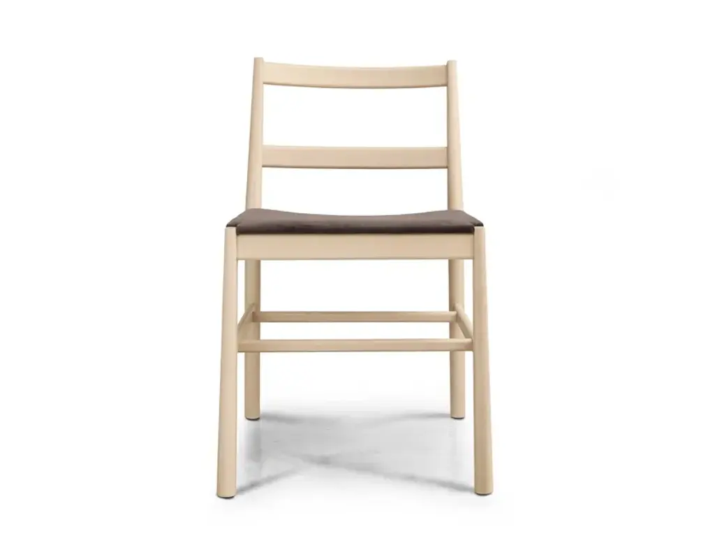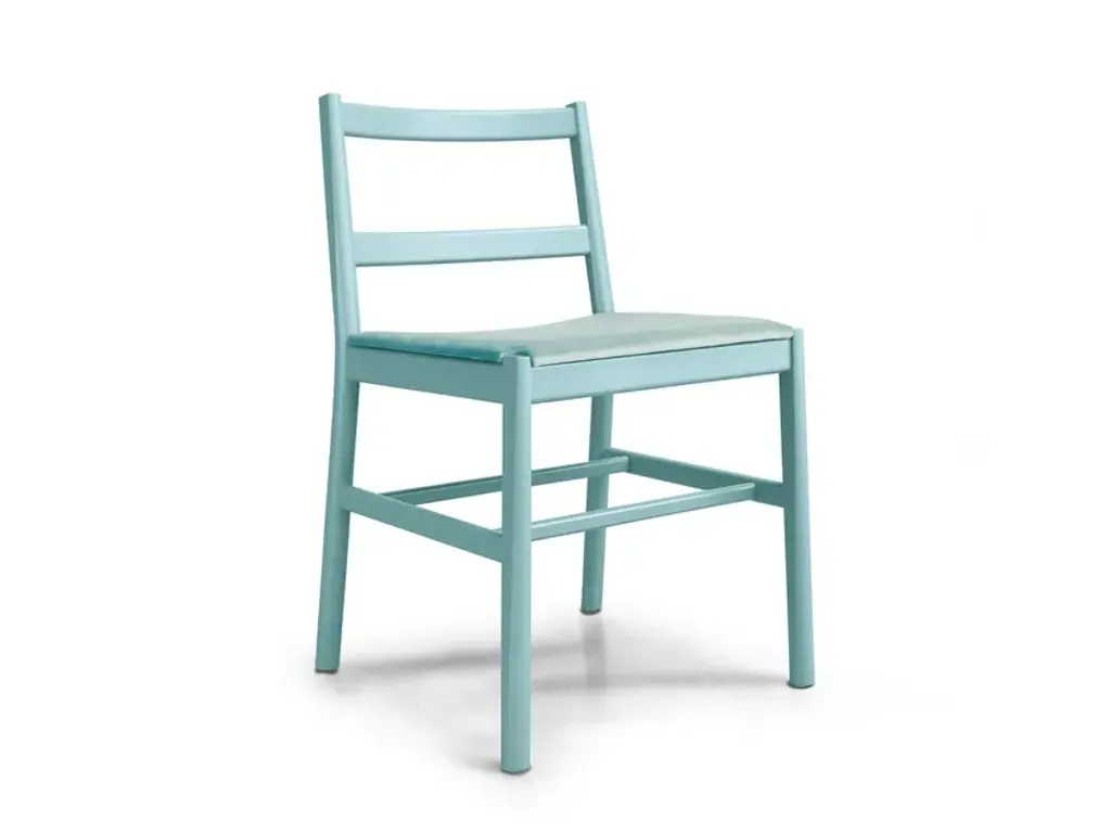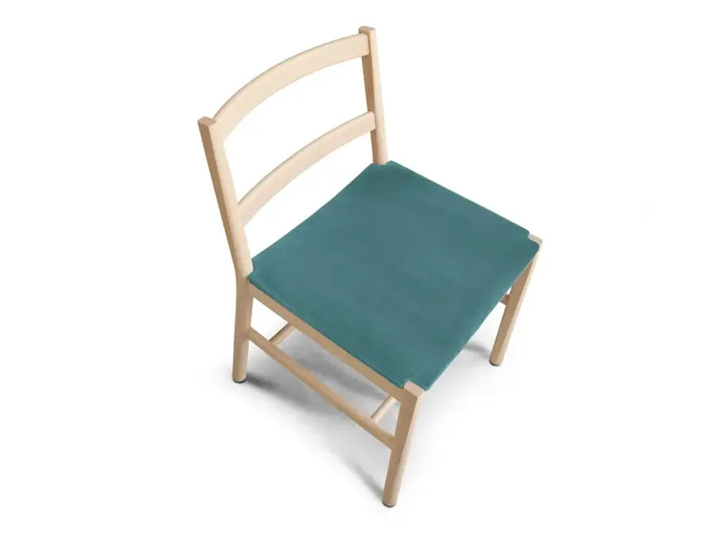 Beechwood chair with or without colored rope back and wood seat (also upholstered with leather or fabric) from the JULIE collection, designed by Emilio Nanni.