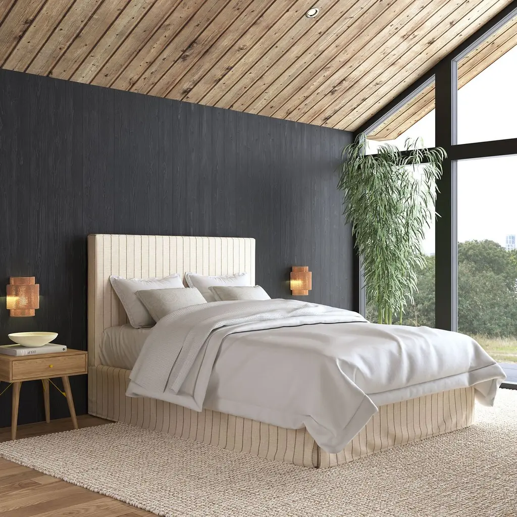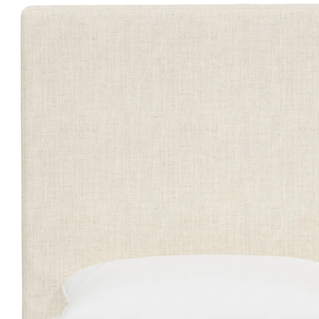 With its elegant simplicity, this bed frame boasts clean lines and a tall headboard, commanding attention in any room. The tailored slipcover is removable and available in a variety of easy-to-clean fabrics, allowing you to personalize your bedroom with a perpetually fresh look. A high padded headboard is ideal for resting against when reading or watching TV. Combining practicality with style, this slipcover bed is perfect for adding a signature touch to your space. Handcrafted in the USA, mattress and box spring required (suggested box spring height is 9”).