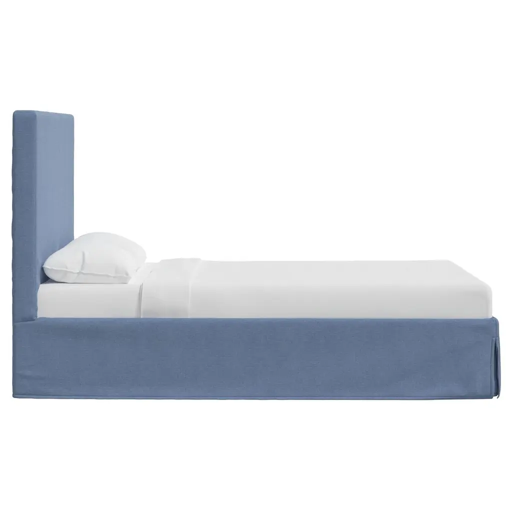 With its elegant simplicity, this bed frame boasts clean lines and a tall headboard, commanding attention in any room. The tailored slipcover is removable and available in a variety of easy-to-clean fabrics, allowing you to personalize your bedroom with a perpetually fresh look. A high padded headboard is ideal for resting against when reading or watching TV. Combining practicality with style, this slipcover bed is perfect for adding a signature touch to your space. Handcrafted in the USA, mattress and box spring required (suggested box spring height is 9”).