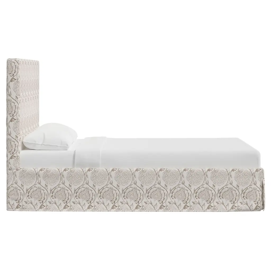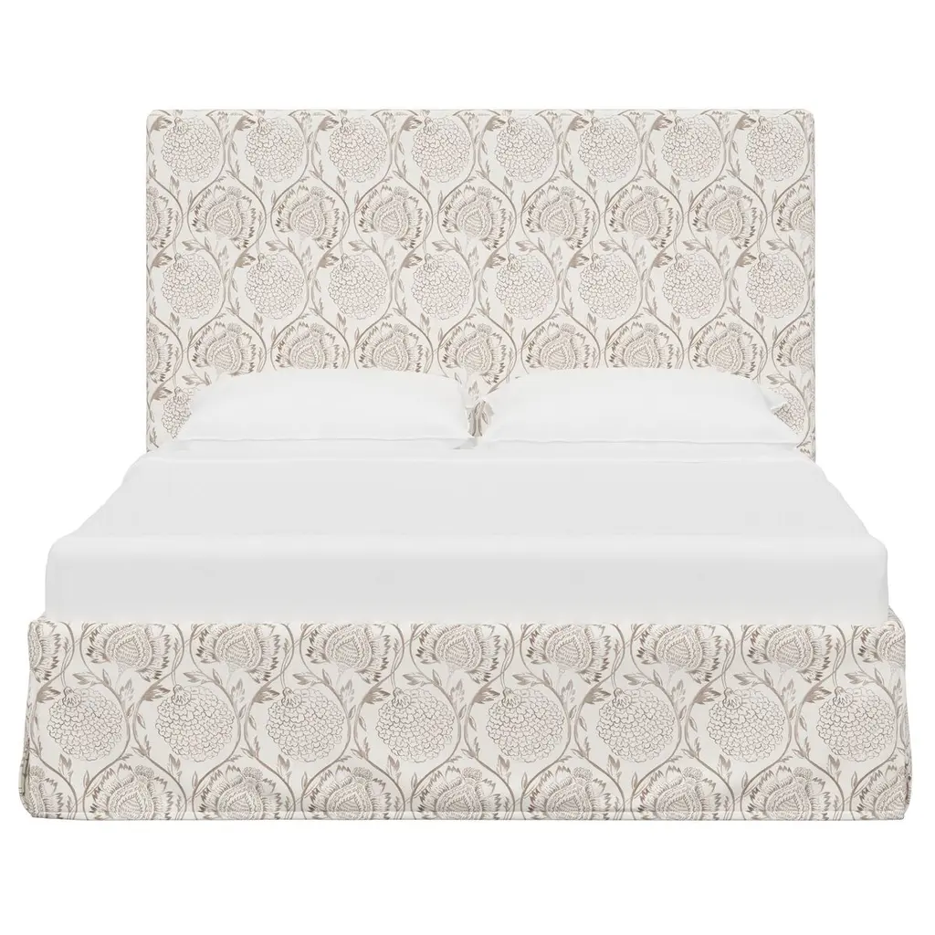 Exclusive to One Kings Lane: With its elegant simplicity, this bed frame boasts clean lines and a tall headboard, commanding attention in any room. The tailored slipcover is removable and upholstered in one of our most popular prints, the large scale Ranjit Floral pattern. A high padded headboard is ideal for resting against when reading or watching TV. Combining practicality with style, this slipcover bed is perfect for adding a signature touch to your space. Handcrafted in the USA, mattress and box spring required (suggested box spring height is 9”).